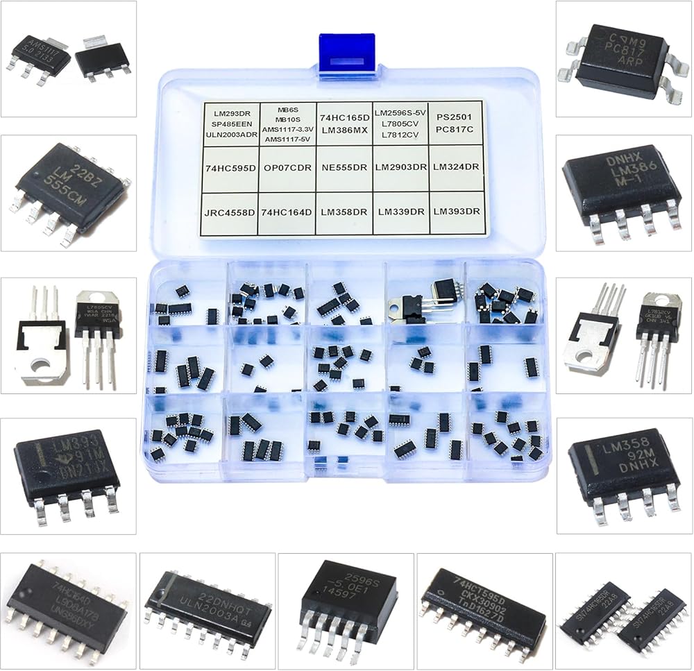 High quality IC Integrated Circuit: Equipped with JRC4558D ,74HC164D,LM358DR,LM339DR,LM393DR,74HC595D,OP07CDR,NE555DR,LM2903DR,LM324DR,LM293DR,SP485EEN,ULN2003ADR,MB6S,MB10S,AMS1117-3.3V,AMS1117-5V,74HC165D,LM386MX,LM2596S-5V,L7805CV,L7812CV,PS2501,PC817C