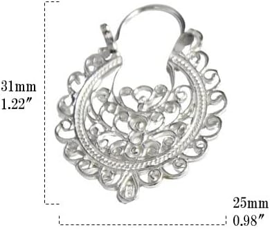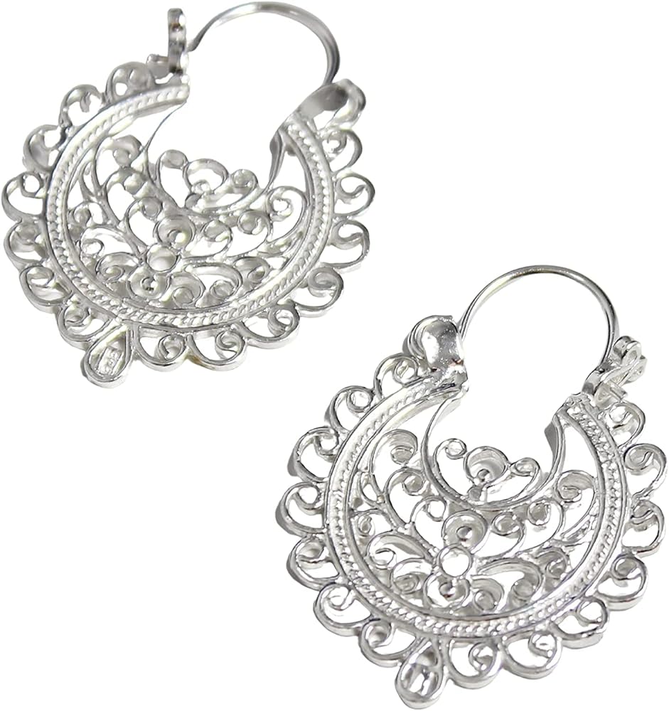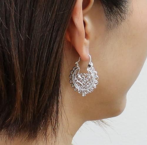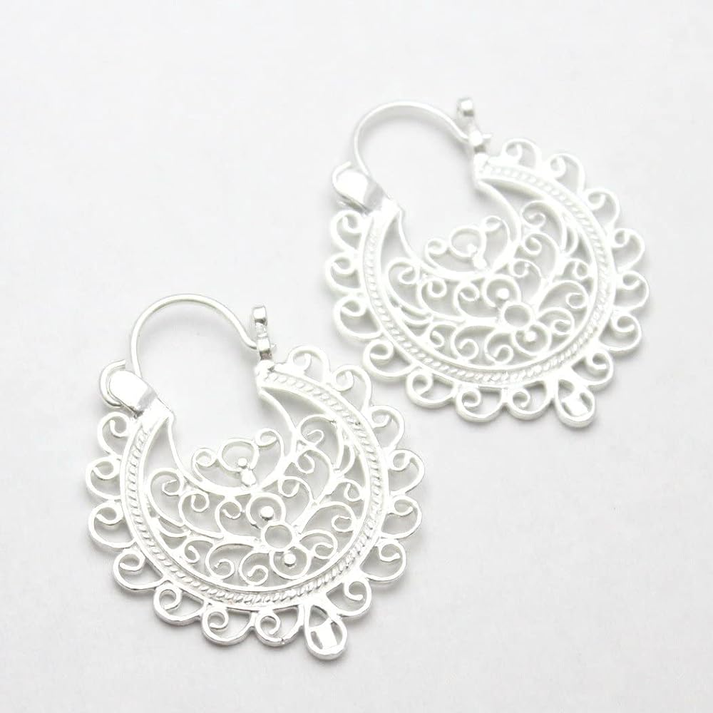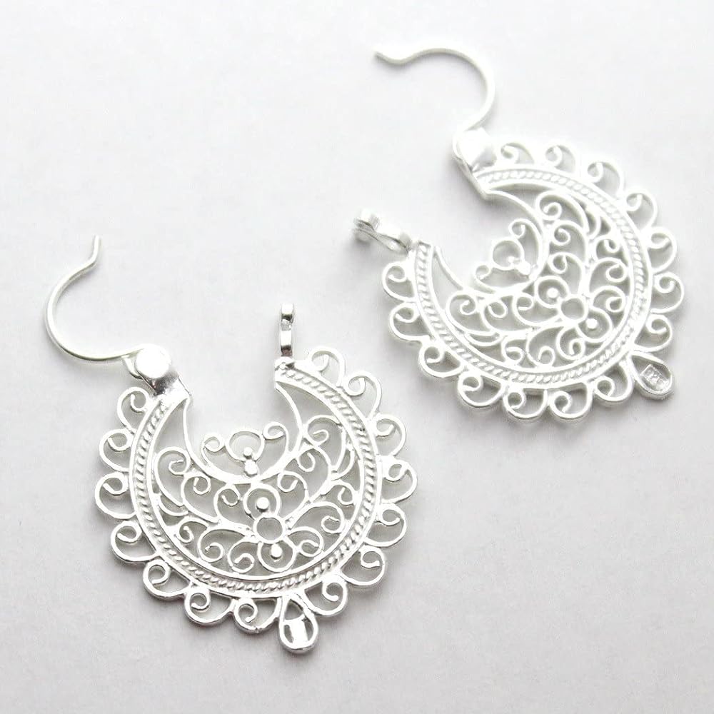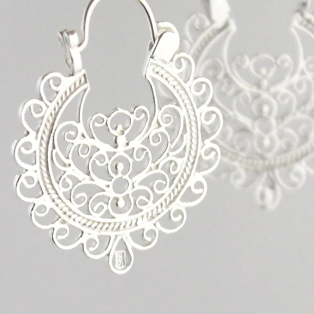 - المواصفات - زوج من الأقراط الفضية بزخارف موقع قران والتي يُقال أنها تجلب الحظ السعيد.