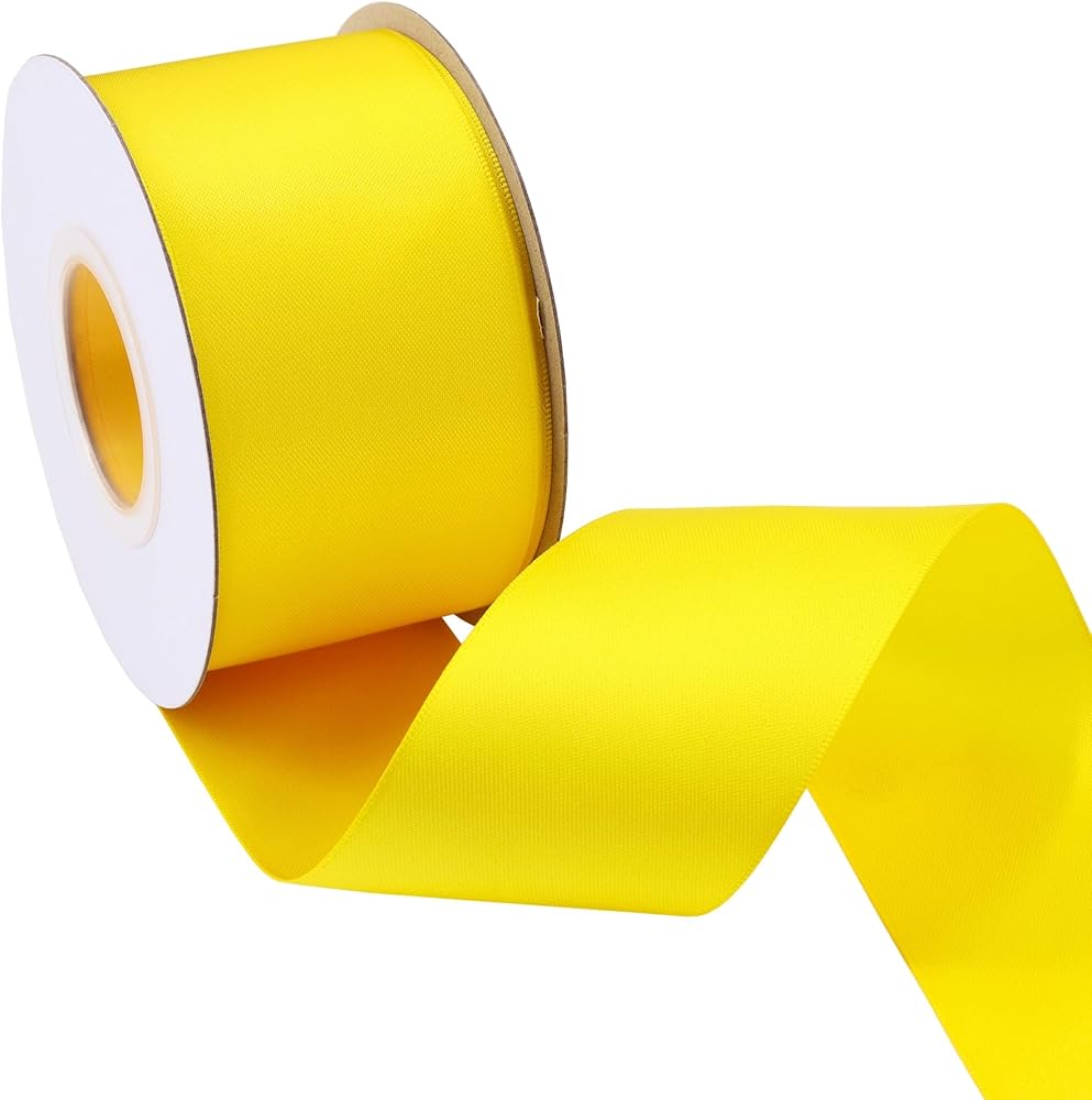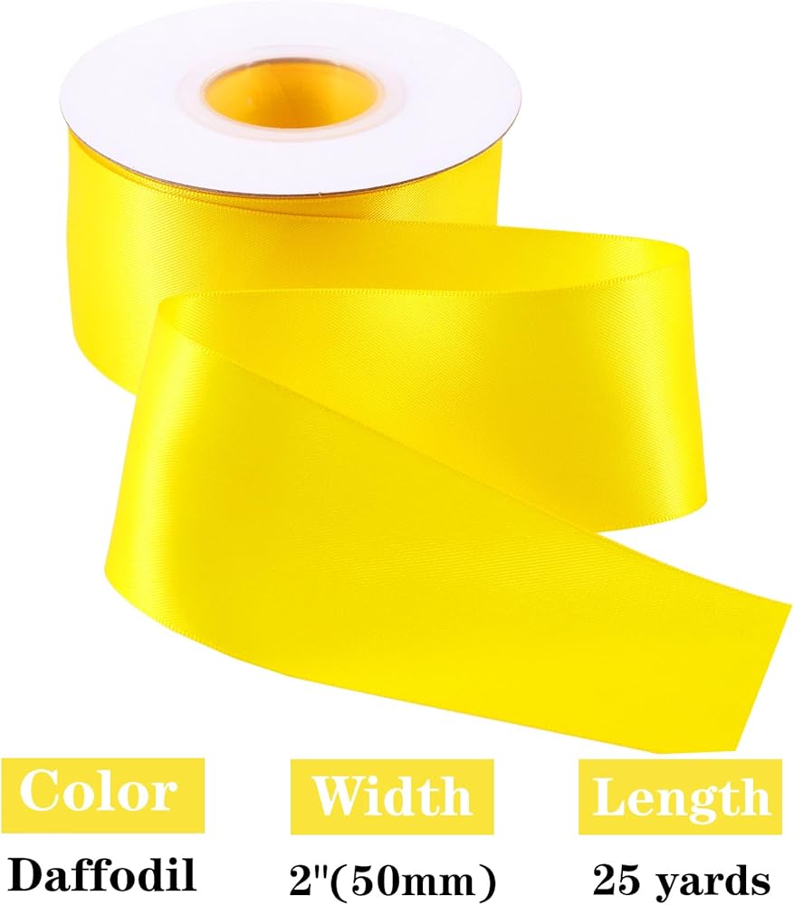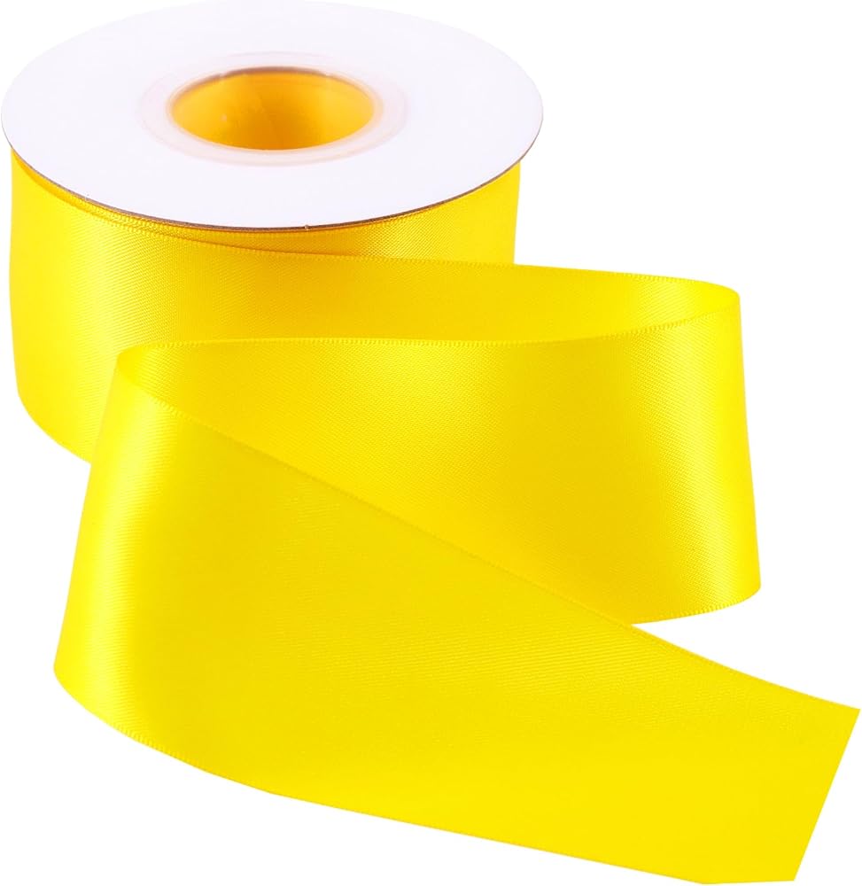 {SIZE} شريط من الساتان مزدوج الوجه بعرض 1-1/2 بوصة ولفة طويلة متواصلة بطول 50 ياردة، وهو ما يكفي للاستخدام اليومي. يمكنك قص أحجام مختلفة حسب احتياجاتك وتغليف الهدايا وتزيين منزلك.