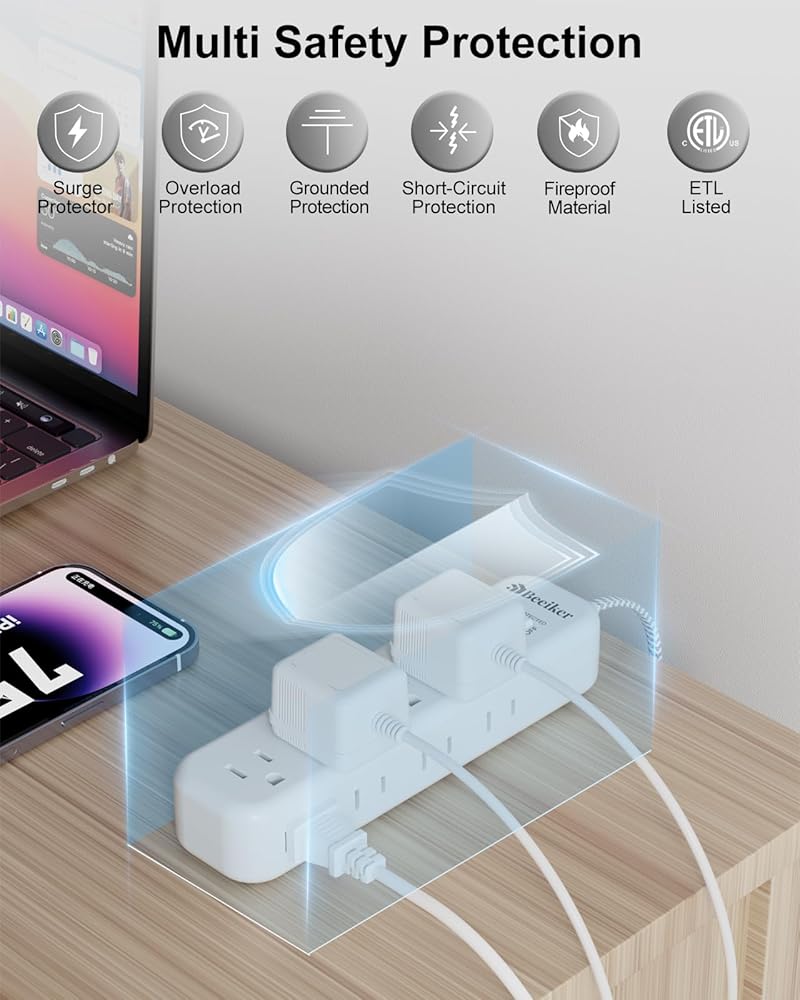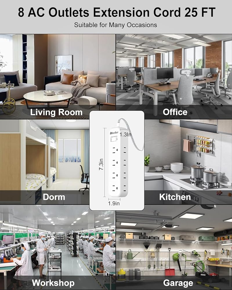 【حماية متعددة للسلامة ومضمونة للسلامة الموثوقة】تم اعتماد سلك تمديد الحماية من زيادة التيار بطول 25 قدمًا من قبل ETL وFCC، وهو مصنوع من غلاف PC مقاوم للحريق، مع وحدة أمان متعددة مدمجة تحمي أجهزتك الإلكترونية من زيادة التيار والجهد الزائد، الإفراط في التيار وماس كهربائى. يوفر Beeiker قلقًا مجانيًا لمدة 12 شهرًا وخدمة عملاء على مدار 24 ساعة.