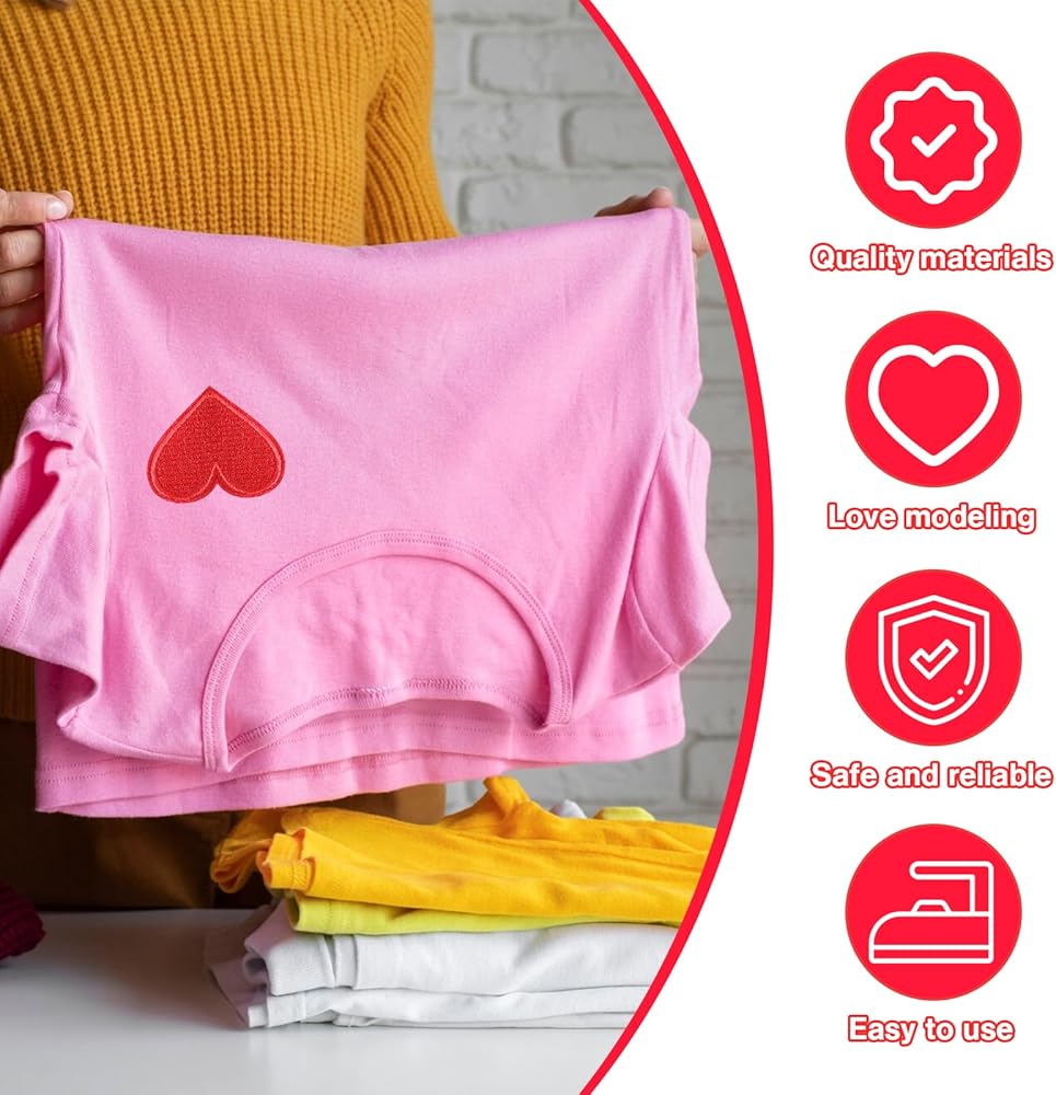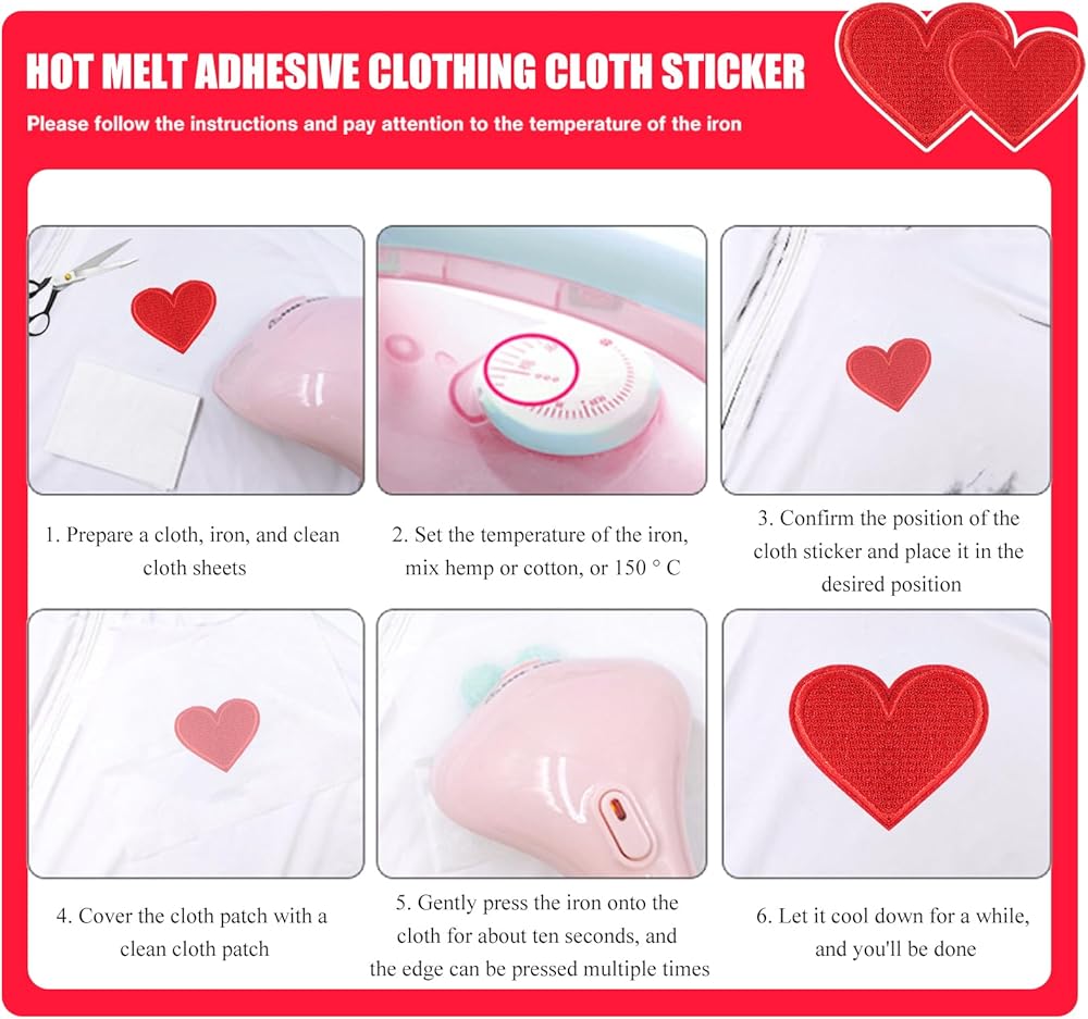 【Simple to Use】Our heart iron on decals feature hot melt adhesive on the back for easy application. Simply place them over stains or holes on clothing, then iron or sew them on. The heart decals for fabric are a convenient and stylish way to cover imperfections on your costume.