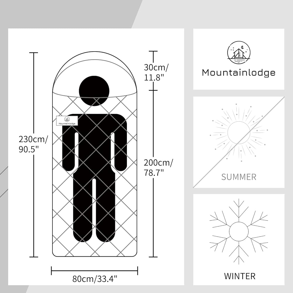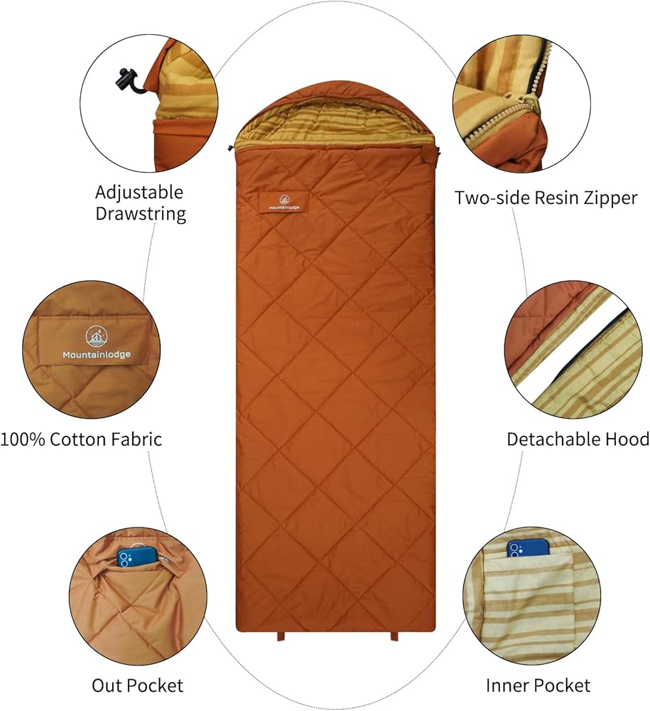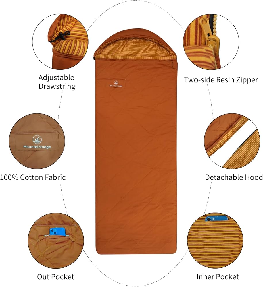 • 【 حجم مطمئن 】- تتميز حقيبة النوم هذه بحجم مصمم للبالغين: 185+35 × 85 سم/86.6 بوصة × 33.4 بوصة. يمكن لكل من البالغين والأطفال الاستمتاع ببيئة نوم دافئة ومريحة في حقيبة النوم هذه. كحقيبة نوم قطنية يمكن أن يضمن بيئة نوم دافئة ومريحة في درجات حرارة صفر درجة.