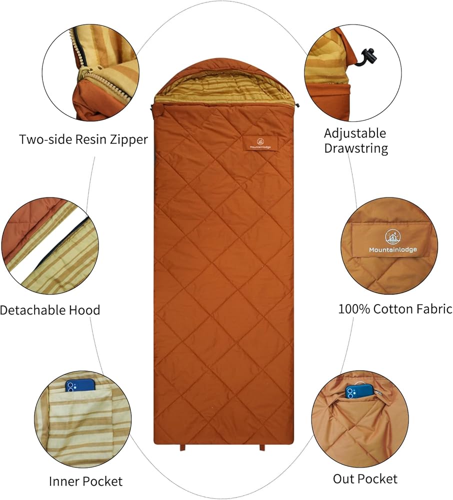 • 【قماش مقاوم للرياح وصديق للبشرة】- حقيبة نوم للتخييم من Mountainlodge مصممة من القطن الذي يمكن أن يكون صديقًا للبشرة ومقاومًا للرياح. وهذا يعني أنه عند استخدام حقيبة النوم هذه في الهواء الطلق، يمكنها حمايتك من البيئات الباردة. ليس هذا فحسب، بل هذا السفر يمكن أيضًا استخدام كيس النوم في الداخل. عندما تريد أن تأخذ قيلولة على الأريكة أو السرير، يمكنك فتحها بالكامل واستخدامها كبطانية.