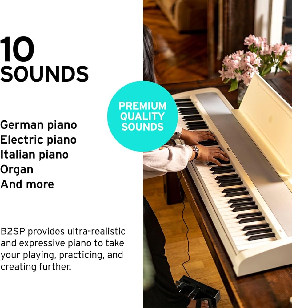 • 【جودة صوت ممتازة】- اكتشف 12 صوتًا بما في ذلك البيانو والبيانو الكهربائي والأوتار والمزيد. يوفر B2 نغمة بيانو واقعية للغاية ومعبرة، بما في ذلك أصوات البيانو الألمانية والإيطالية الشهيرة لكورج.