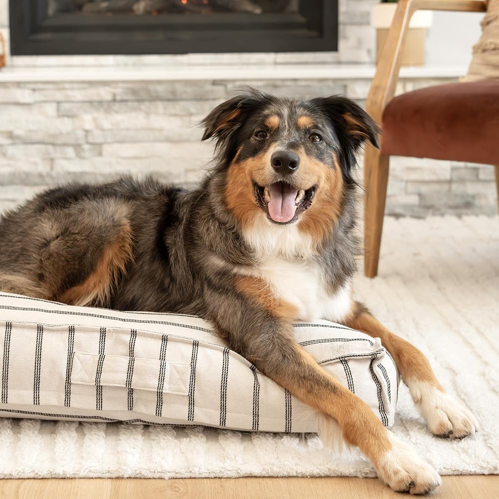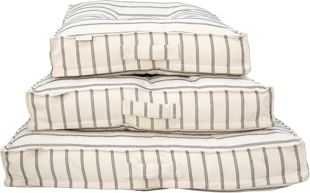 Easy Maintenance: The thoughtful design of our Striped Pillow Pet Bed includes a removable insert for easy cleaning, ensuring a fresh and inviting space for your pet. Cover is machine washable on cold, tumble dry low, no bleach.