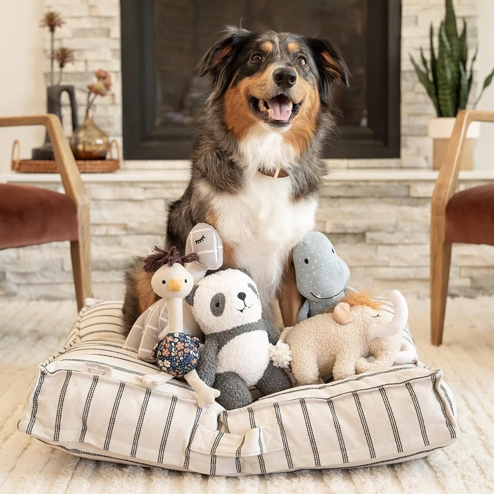 Introducing the Harry Barker Striped Pillow Pet Bed, where comfort meets style in the perfect haven for your furry friend. Designed with a sophisticated touch, the textural woven cream and black yarn dye stripe creates a visually appealing pattern that seamlessly integrates into any home décor and the eco-friendly recycled poly filling promises a luxurious retreat for your four-legged companion. With a removable insert for easy maintenance, this pet bed is not only chic but also practical.