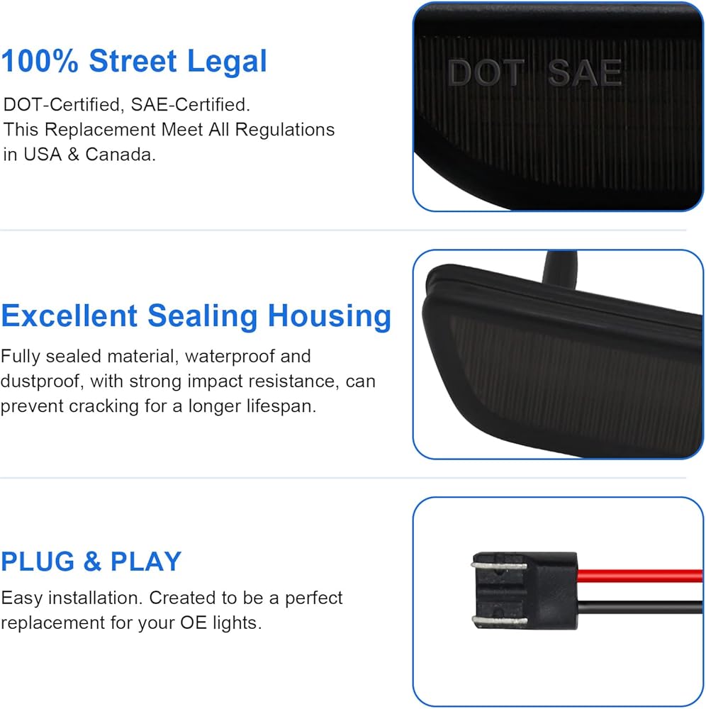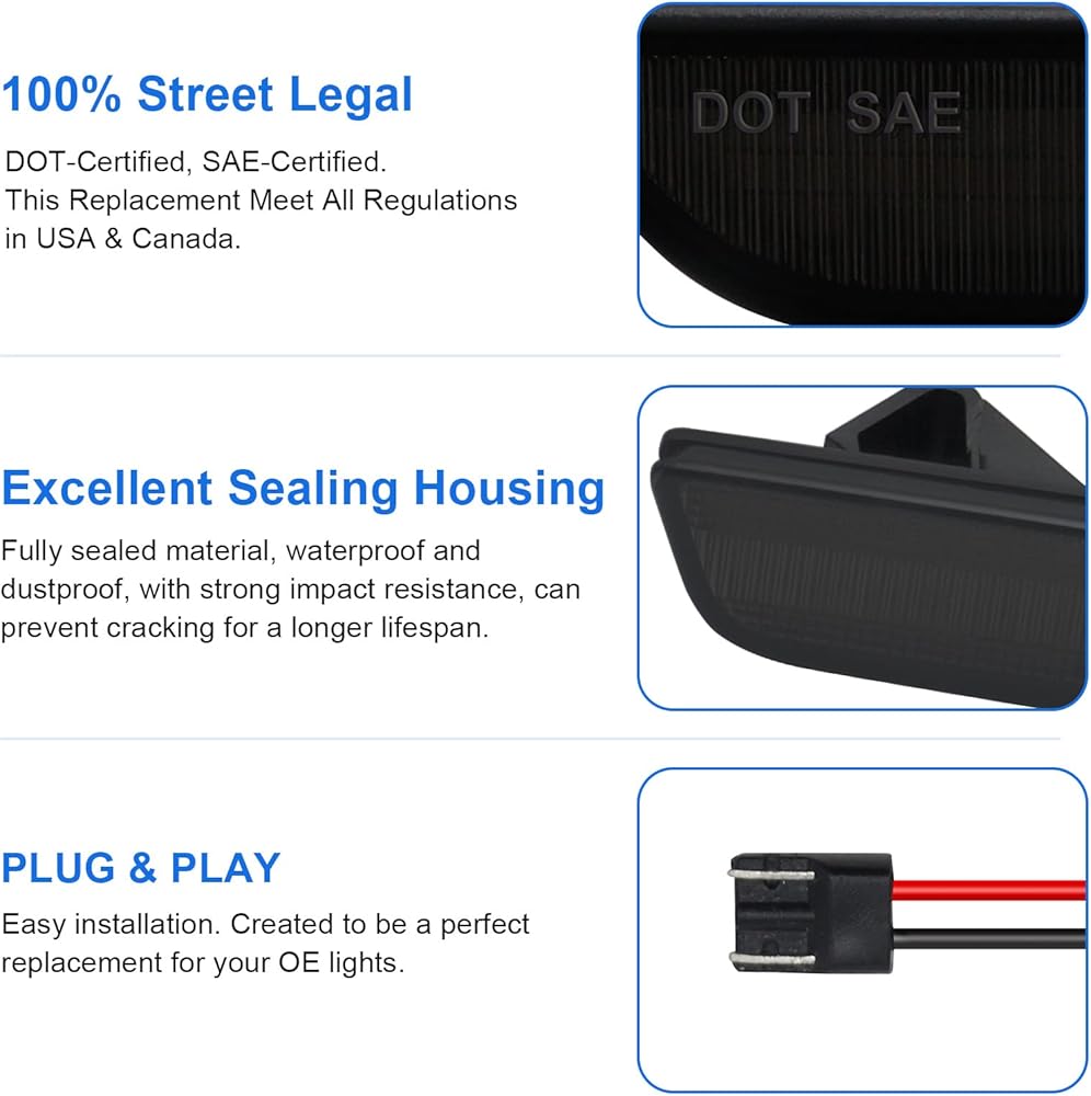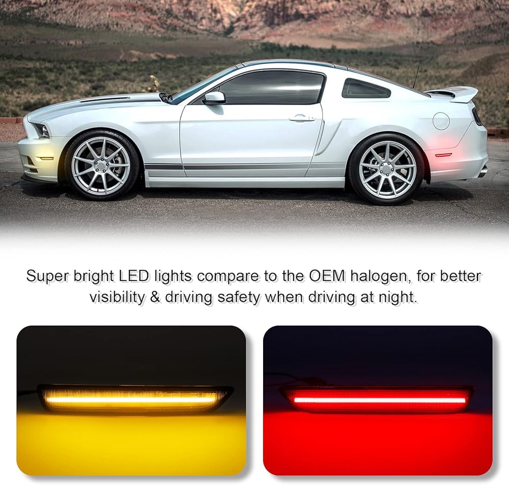 توافق السيارة - قانوني على الطريق، ومعتمد من DOT/SAE. مجموعة إضاءة جانبية متوافقة مع موستانج 2010-2014.