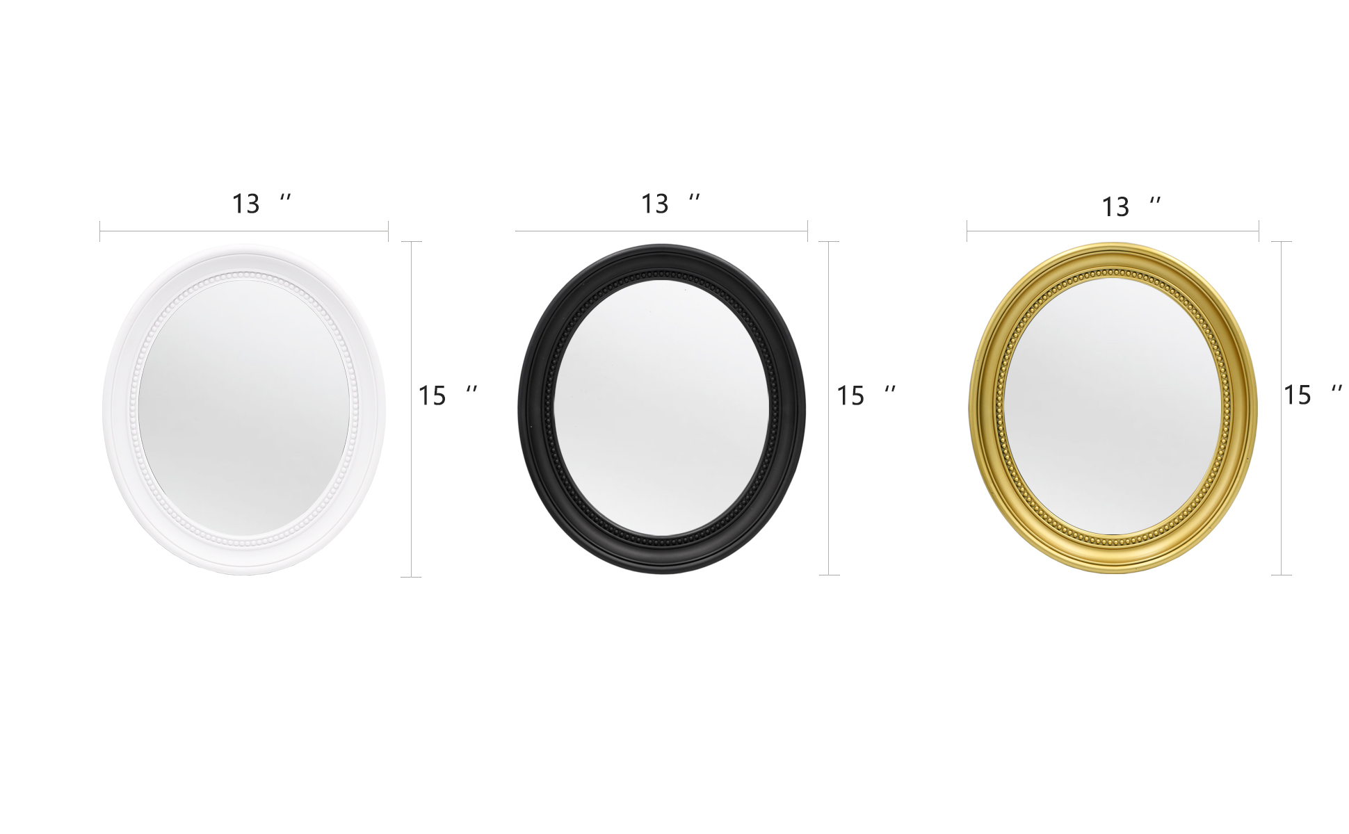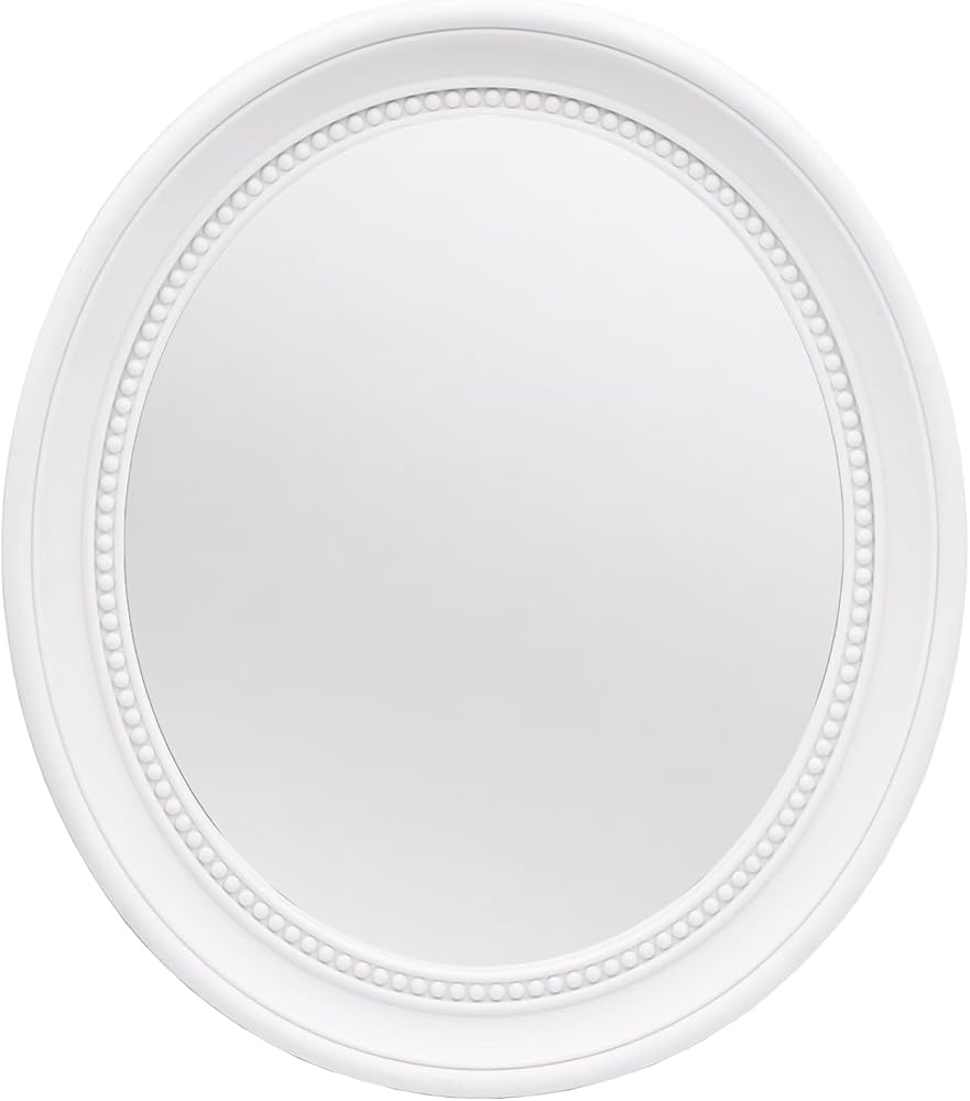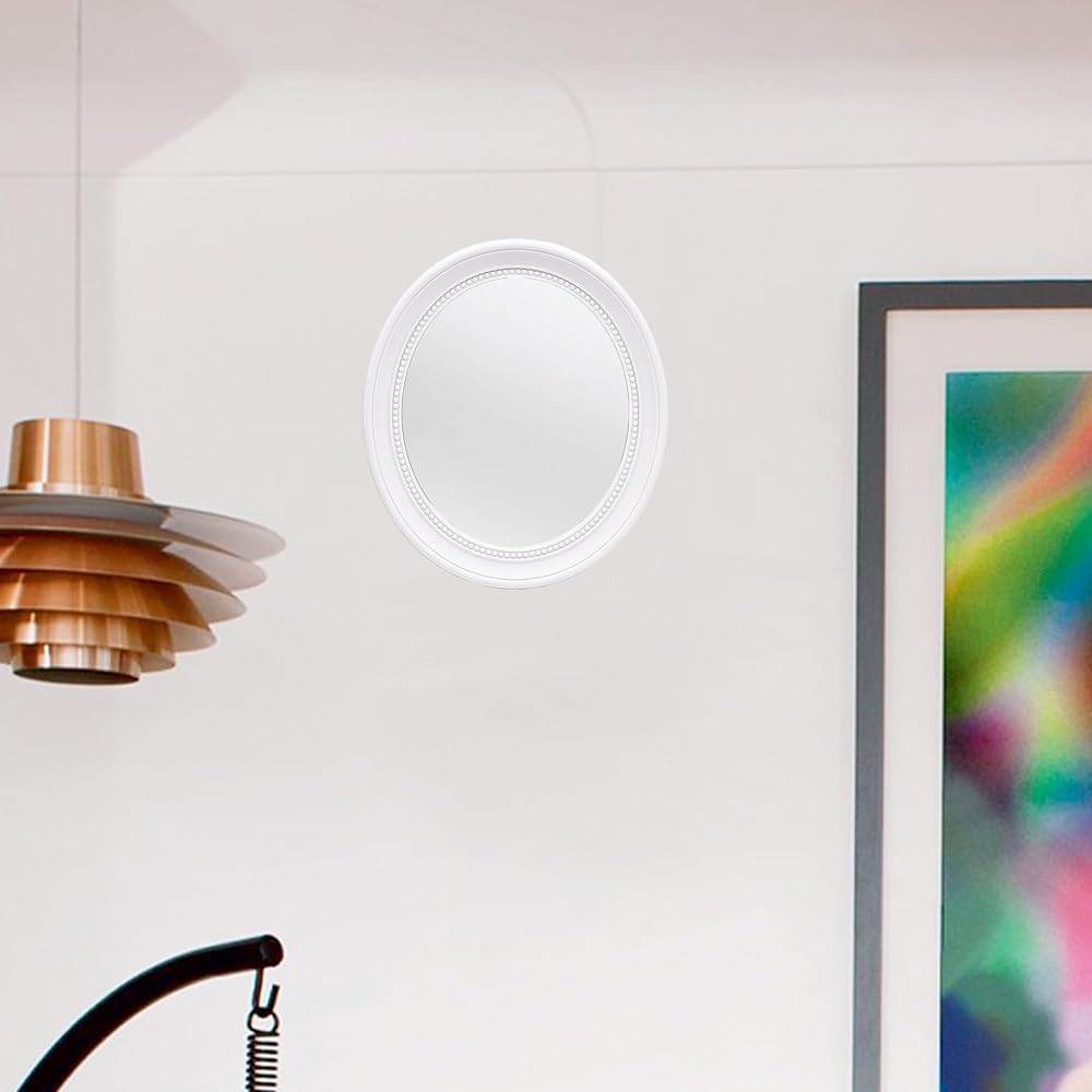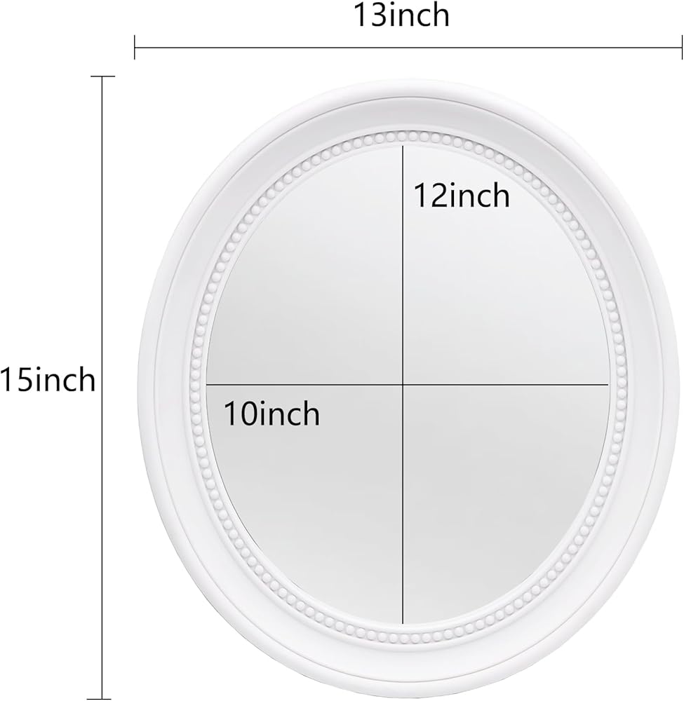 مرآة بيضاوية مقاس 15 × 13 بوصة، مرآة بيضاء، مرآة حمام، مرآة حمام بيضاء، مرآة حائط