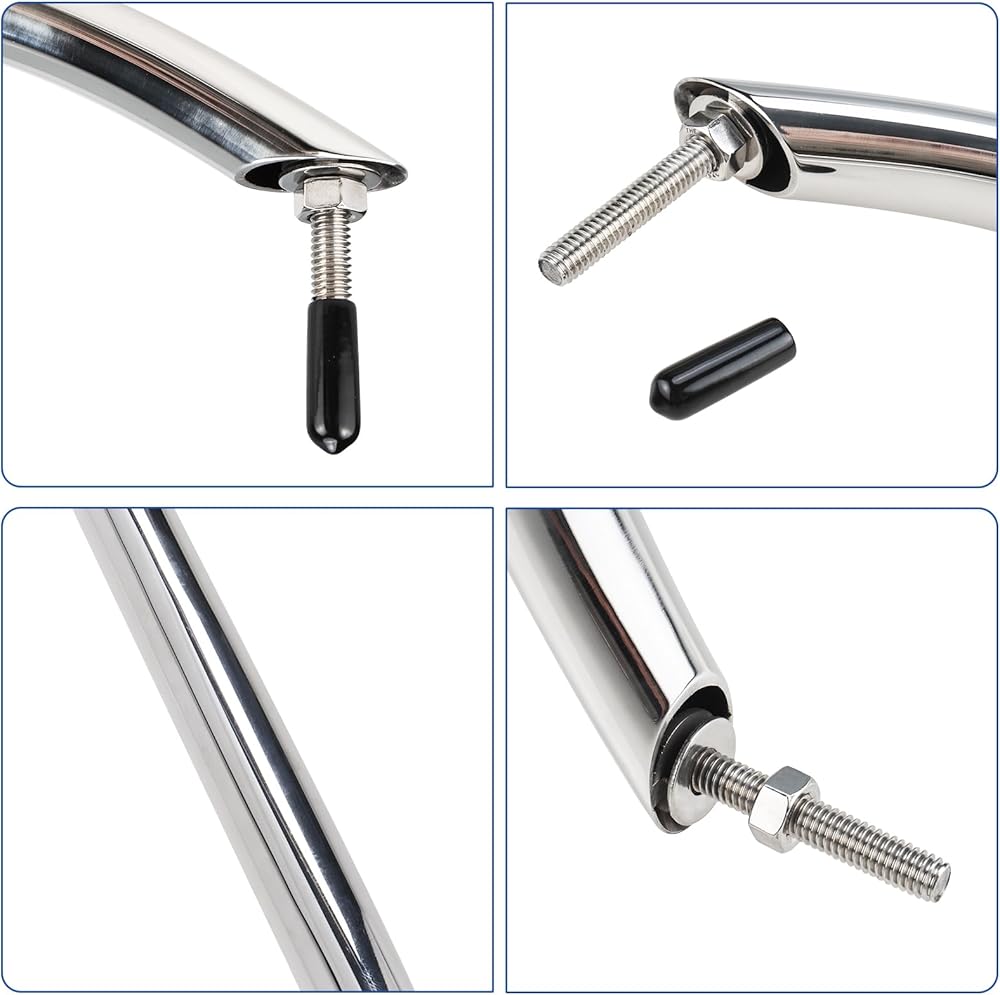 NovelBee 2 قطعة مقبض القارب، 17.3 بوصة مصقول من الفولاذ المقاوم للصدأ البيضاوي مقبض المقبض درابزين لليخوت البحرية RV