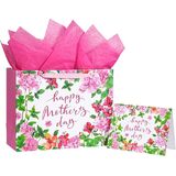 SUPER CONVENIENT: Purchase includes 1 gift bag, each bag comes with 1 sheet of tissue paper, 1 pink butterfly gift tag, 1 greeting card, to make wrapping gifts quick and easy. It is perfect for presenting a coordinated set of gifts or giving matching presents to mom, wife.