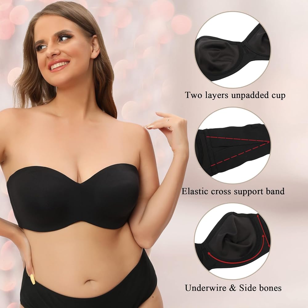 دعم قوي: توفر حمالة الصدر بدون حمالات ذات الحجم الكبير مع سلك داخلي وعظام جانبية دعمًا رائعًا وتمنع الترهل للنساء ذوات الصدر الكبير.