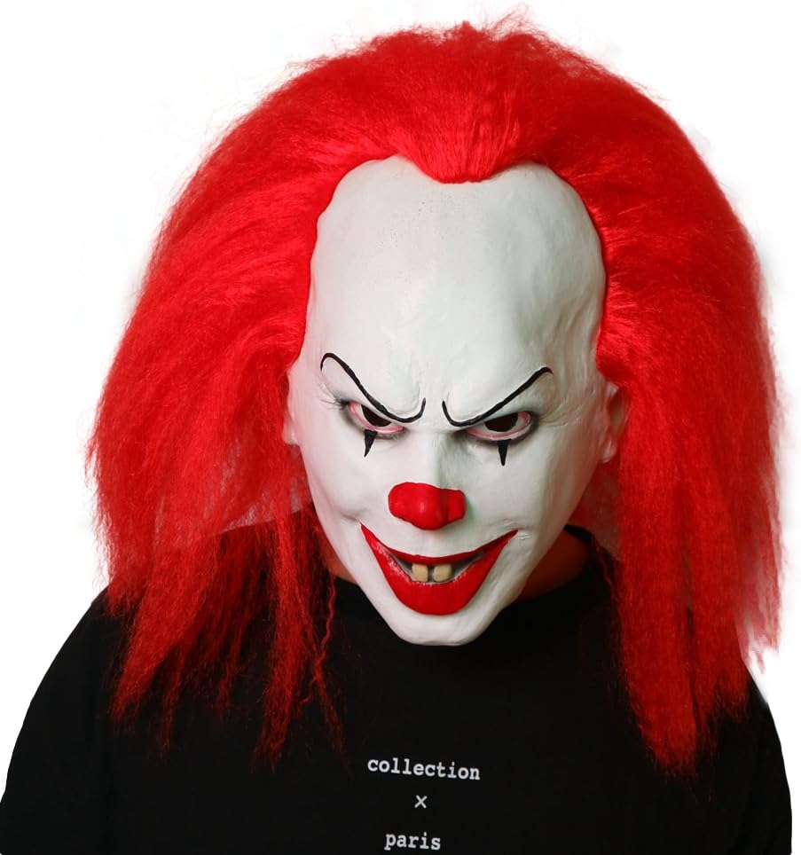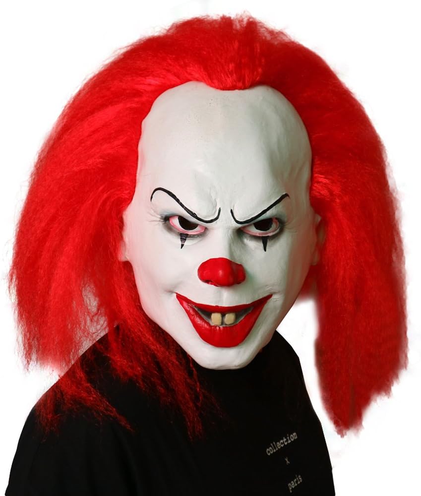• Our Evil clown mask is made of 100% Latex material,has red hair and a funny look