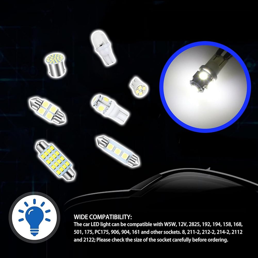 Multi-function: This set contains various types of LED lamps, which are suitable for lighting needs of different parts, such as headlights, rear lights, interior lights, etc. They can provide all-round lighting.