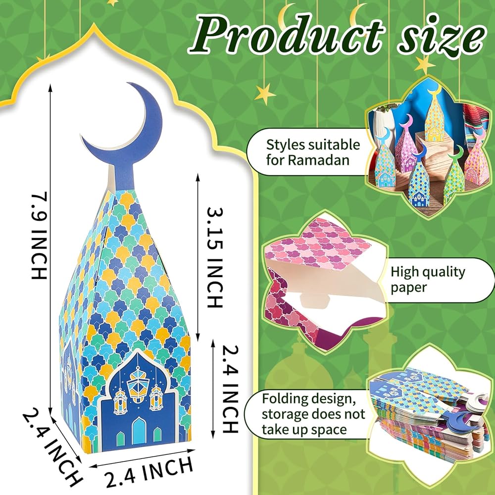 These Eid boxes are truly multipurpose, ideal for holding small gifts, candies, snacks, chocolates, cards, or hairpins, they are practical for various occasions such as Ramadan, birthdays, or church gatherings. Their versatility enhances convenience in your daily routine.