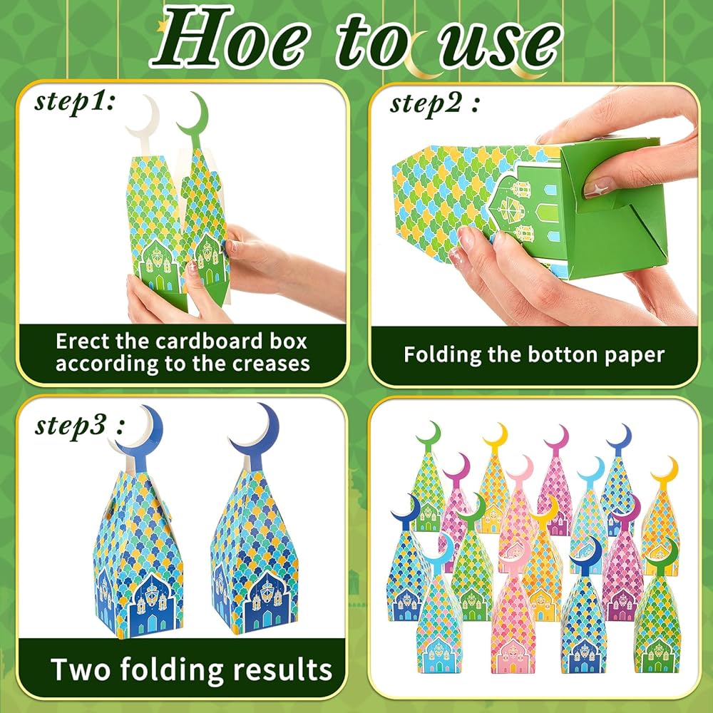 • Simple Eid Style Assembly: no need for complicated setups; The assembly of these Eid Mubarak boxes is simple and straight forward; This means you spend less time preparing and more time celebrating this joyful period