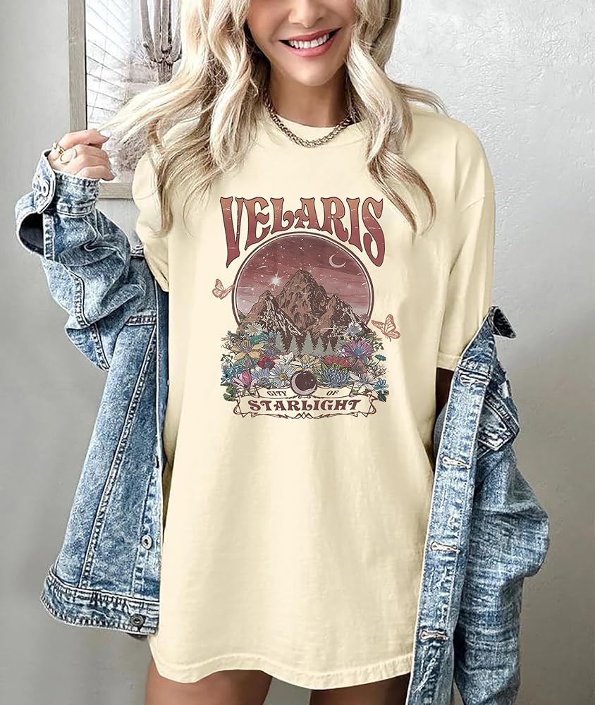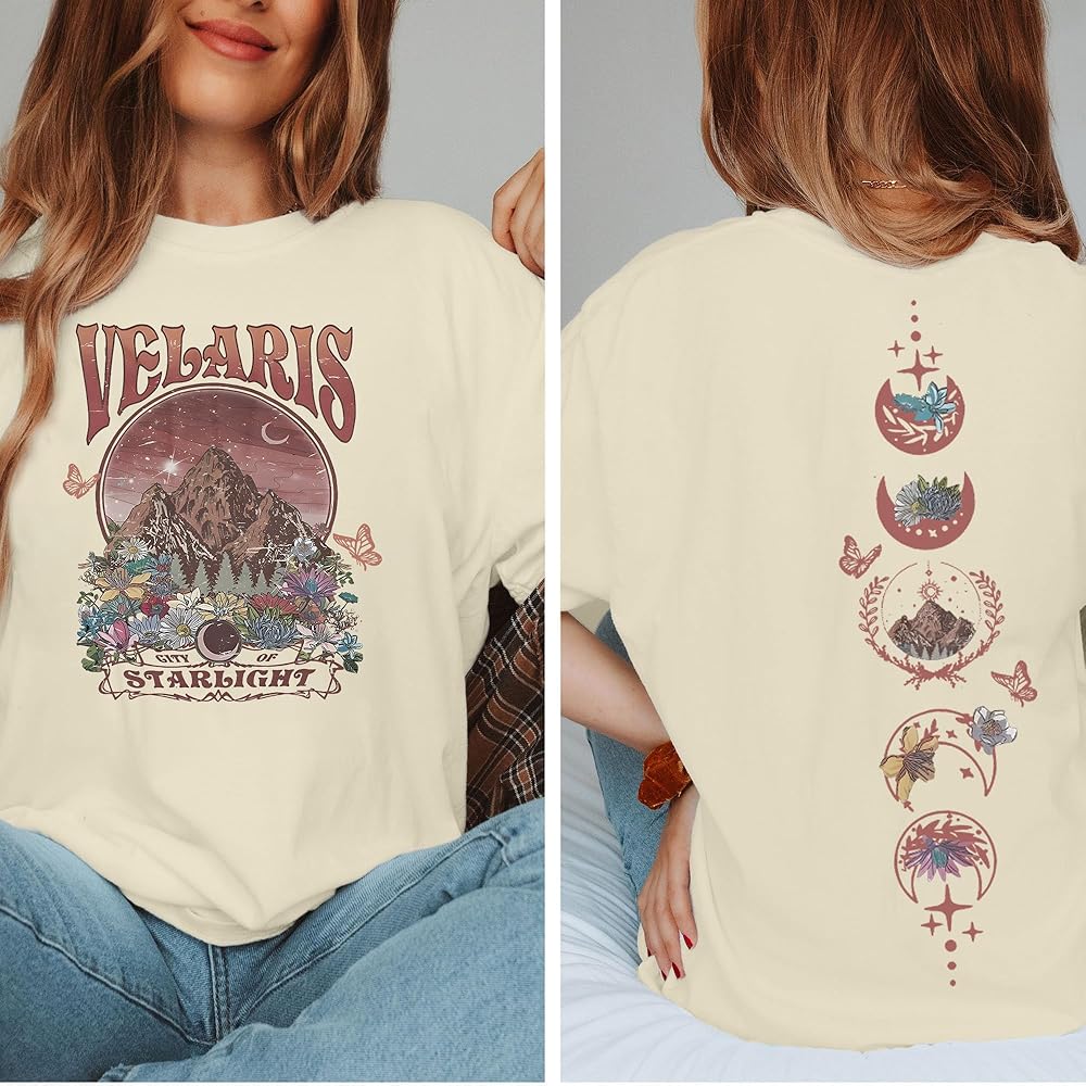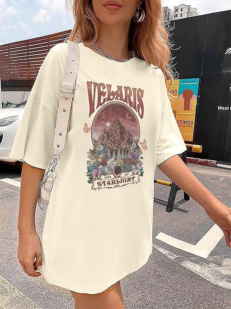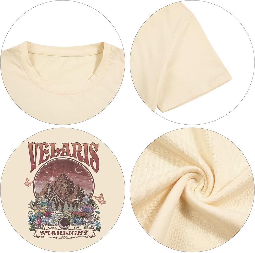 MATERIAL :The City Of Starlight Graphic printed Retro Velaris Shirt is made of soft cotton blend. This Book fan T-Shirt for women shows off your curves perfectly.It's casual and comfortable,you will need them all over the year.
