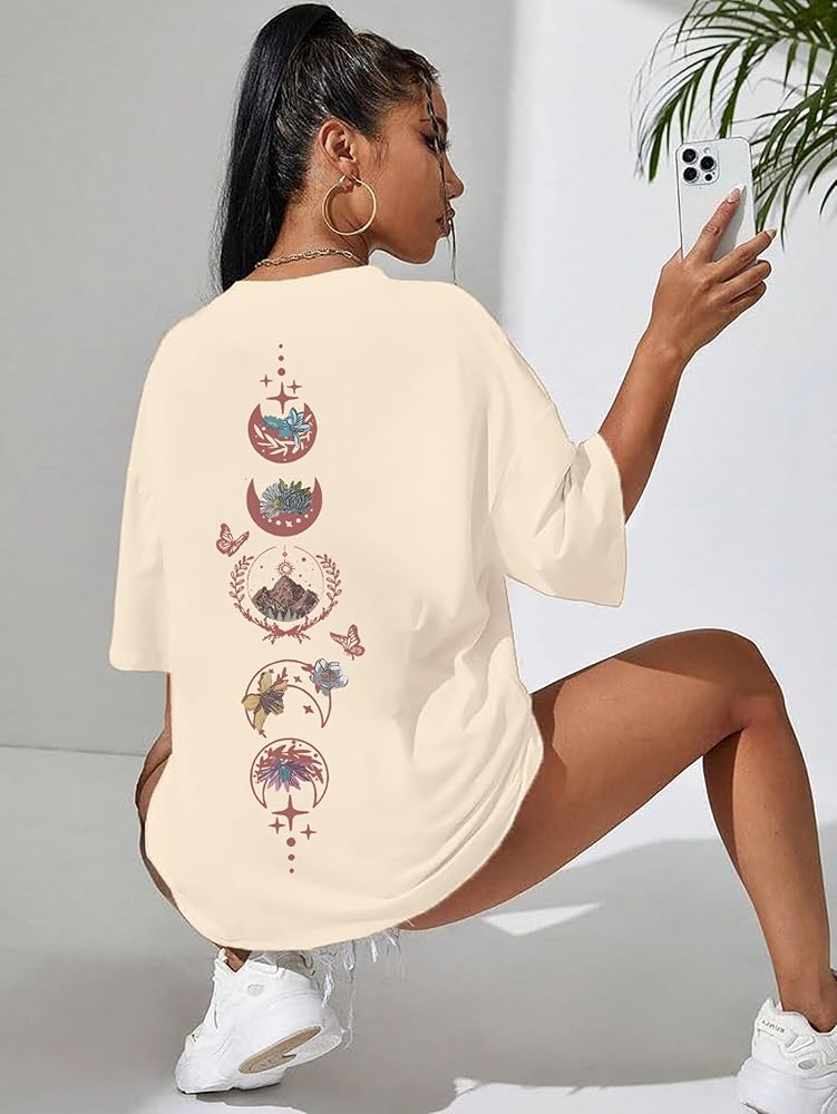 OVERSIZED TEE: This oversized graphic tees is a must in your wardrobe for daily. It features a short sleeve and relaxed style.Letter graphic print design makes you stylish and energetic.