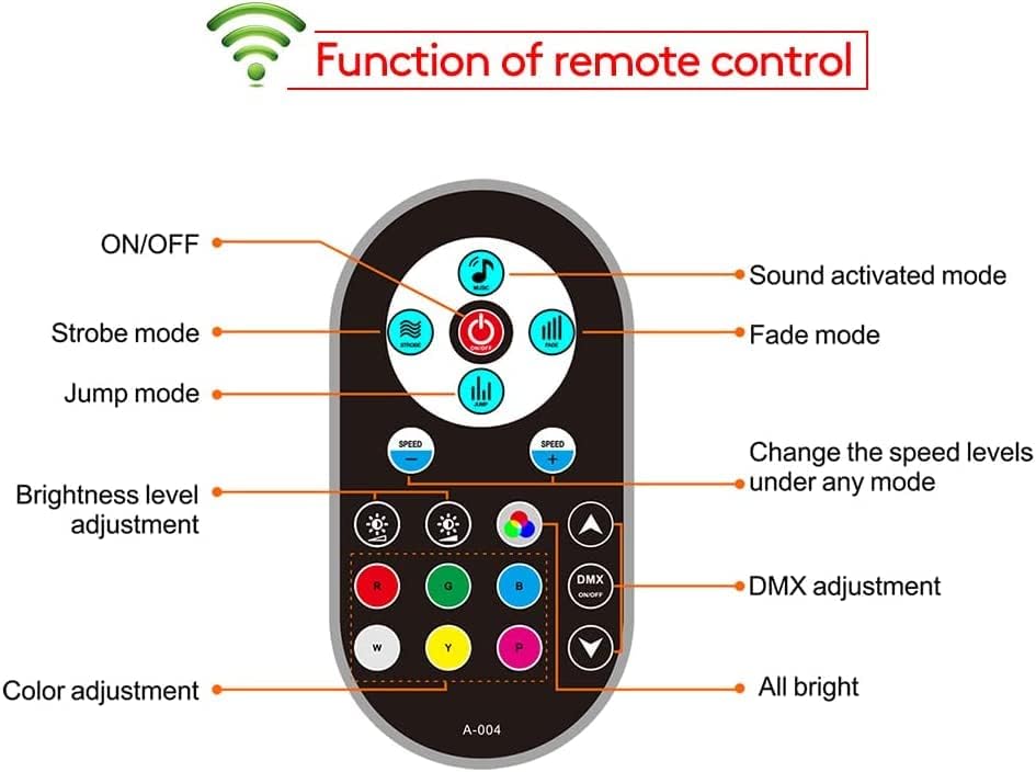 ☀ متعددة الأوضاع: وضع اللون الثابت، وضع القفز، وضع ستروب، وضع تنشيط الصوت، وضع تغيير اللون تدريجيًا، وضع رئيسي/عبد، وضع DMX. اضبط +/- لتغيير اللون والسرعة، جميع الأوضاع موجودة على جهاز التحكم عن بعد (البطاريات غير متضمنة، تحتاج إلى بطاريتين AAA)، سهلة وبسيطة.