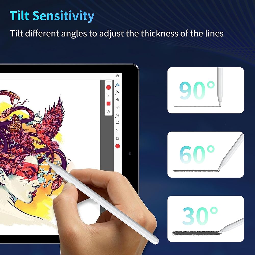 ✍Palm Rejection & Tilt Sensitivity: With the palm rejection function, you can rest your hands on the screen freely. The ipad stylus integrates the latest tilt sensing technology, allowing you control the thickness of each stroke with no lag, no offsets.