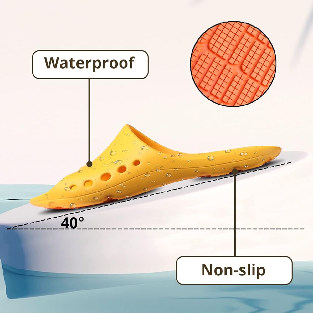 أحذية استحمام مضادة للانزلاق - يحتوي كل زوج من شباشب الحمام المضادة للانزلاق على حوالي 2000 نقطة اتصال مرآة فائقة الإمساك، وأكثر من 1000 أخاديد متعددة الاتجاهات كارهة للماء، وعشرات من الوحدات غير المتماثلة الكارهة للماء لتعزيز القدرة على مقاومة الانزلاق