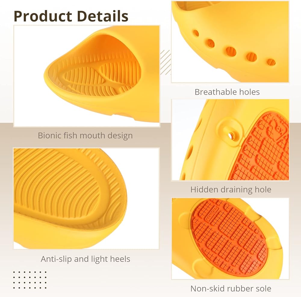 شرائح دش بفتحات - توجد فتحتين هواء مخفيتين في الجزء السفلي من الشبشب وخمس فتحات هواء على الجانبين، والتي يمكن أن تسرع دوران الهواء وتمنع قدميك من الاحتفاظ بالمياه.
