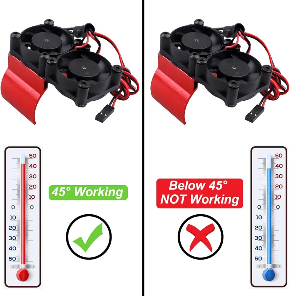 • Easy to Install: This rc fan come with alloy motor clamp and screws, easy to Install. Notice: The plug is not divided into positive and negative poles, and you don' worry the wrong connection will not work.