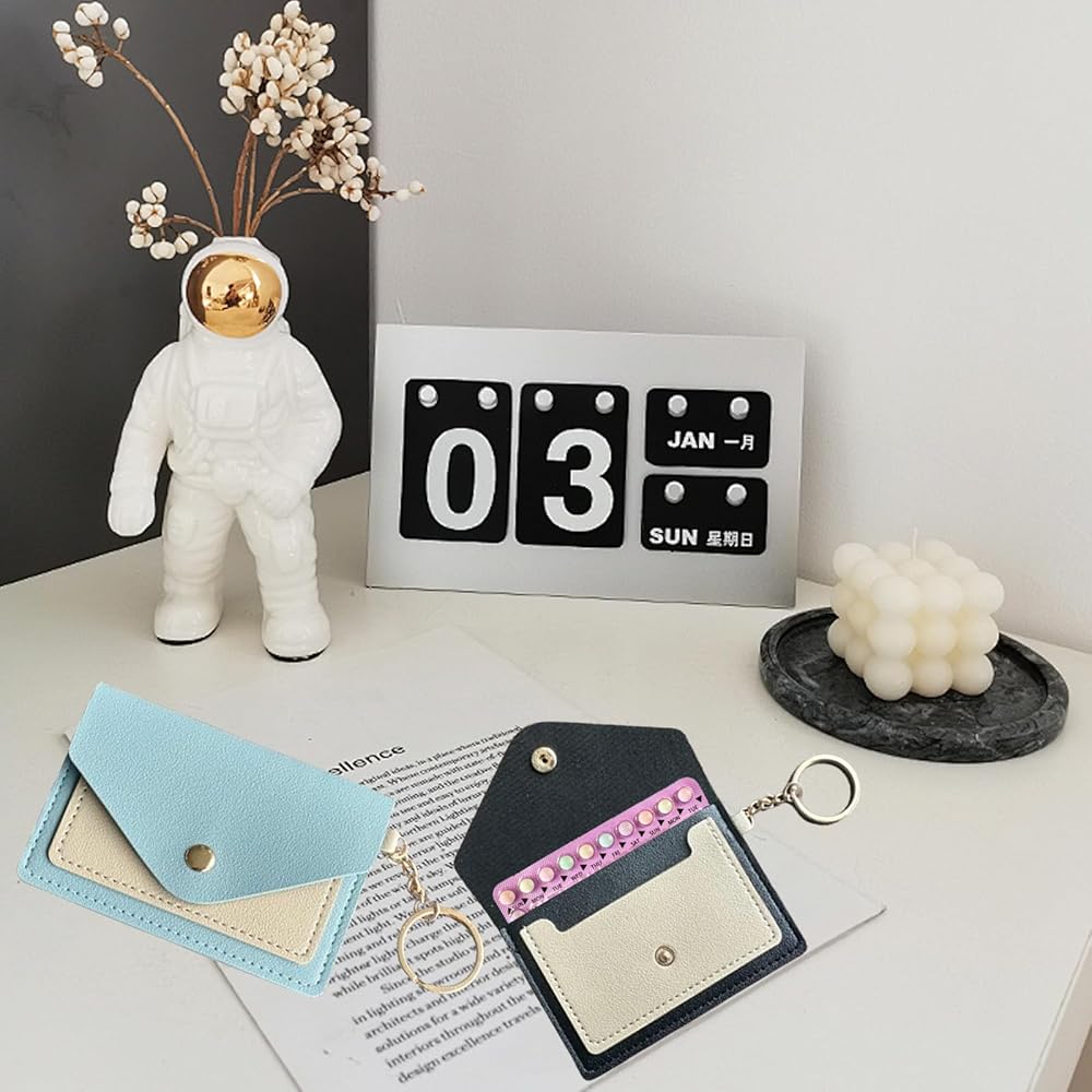 • Charming Pastel Colors:The birth control pill case features charming colors in pink, light blue, and black, adorned with white accents. This not only adds a cute touch but also facilitates easy identification within your wallet. Different colored cases can be designated for specific items, enhancing organizational efficiency.