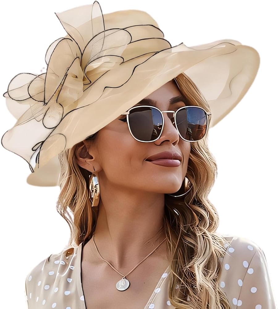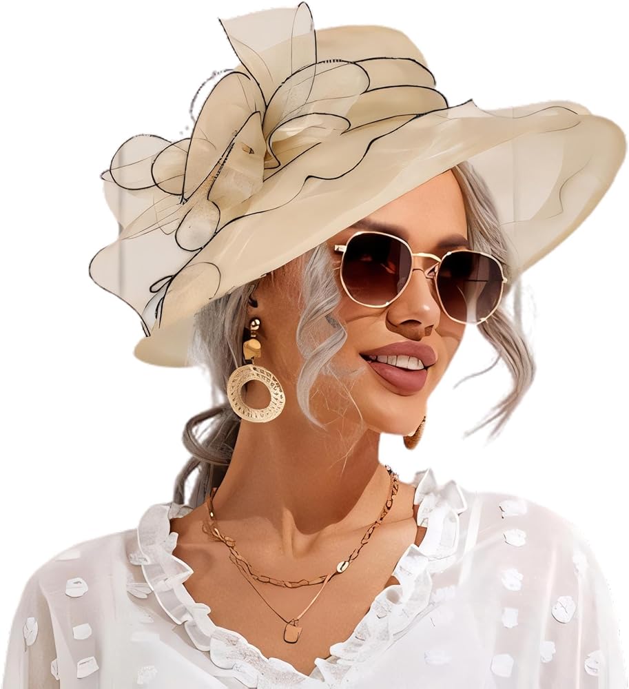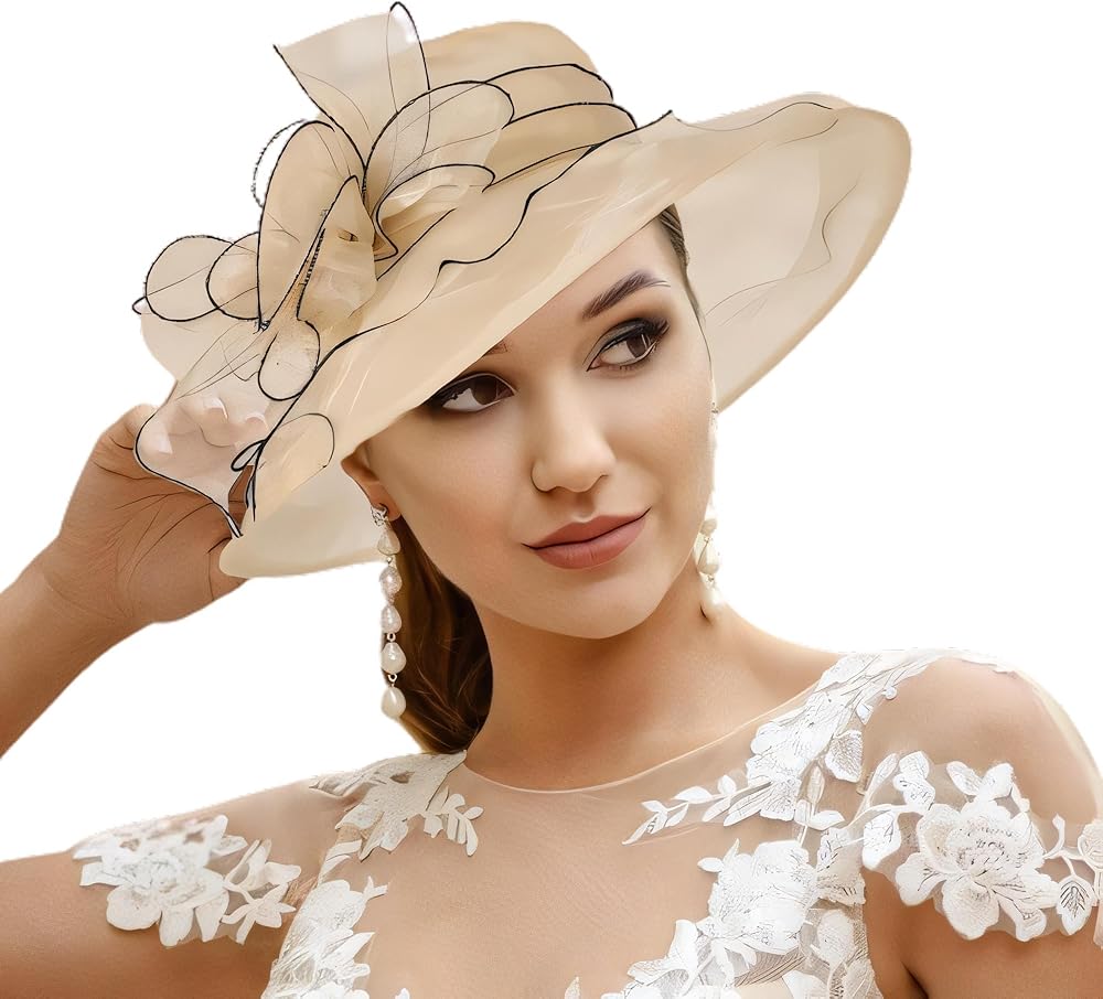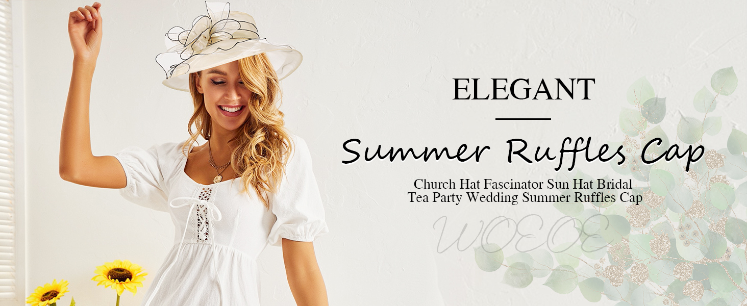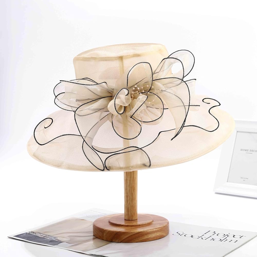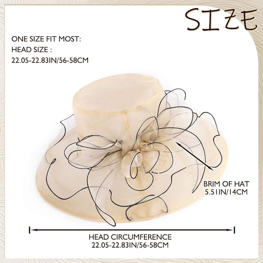 Wooee اللؤلؤ الكنيسة القبعات للنساء الأورجانزا الكنيسة قبعة الفاسناتور قبعة الشمس الزفاف الشاي حفل زفاف الصيف الكشكشة قبعة
