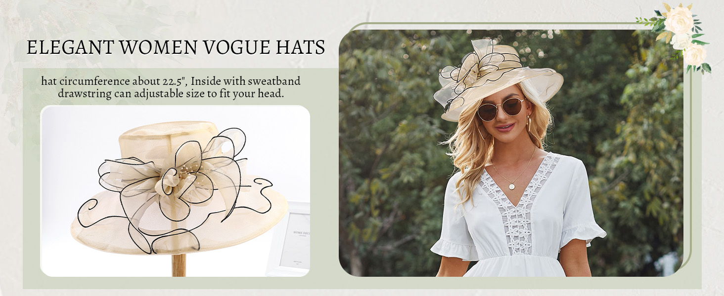 • مقاس قبعات فوغ النسائية الأنيقة: محيط القبعة حوالي 22.5 سم، من الداخل مع رباط للعرق يمكن تعديل حجمه ليناسب رأسك.