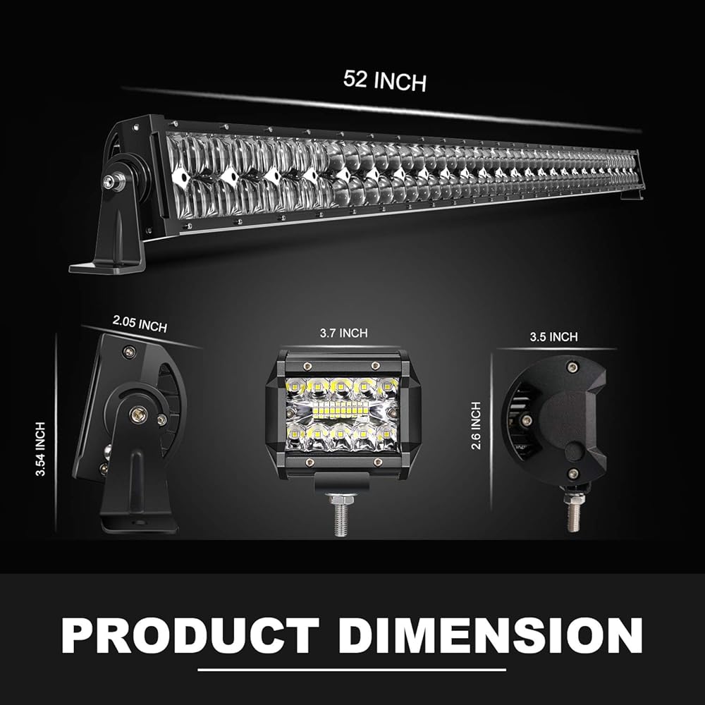 🌙تتضمن العبوة: 1x 52 بوصة 300 وات 5D Led Light Bar + 2x 4 بوصة Led Cube Pods + 1x Rocker Switch Wiring Harness + زوج من دعامات التثبيت JK. نحن نقدم ضمانًا للجودة لمدة عام واحد مع التأكد من حصولك على مصابيح خالية من المخاطر وخدمات ما بعد البيع مرضية بنسبة 100%.