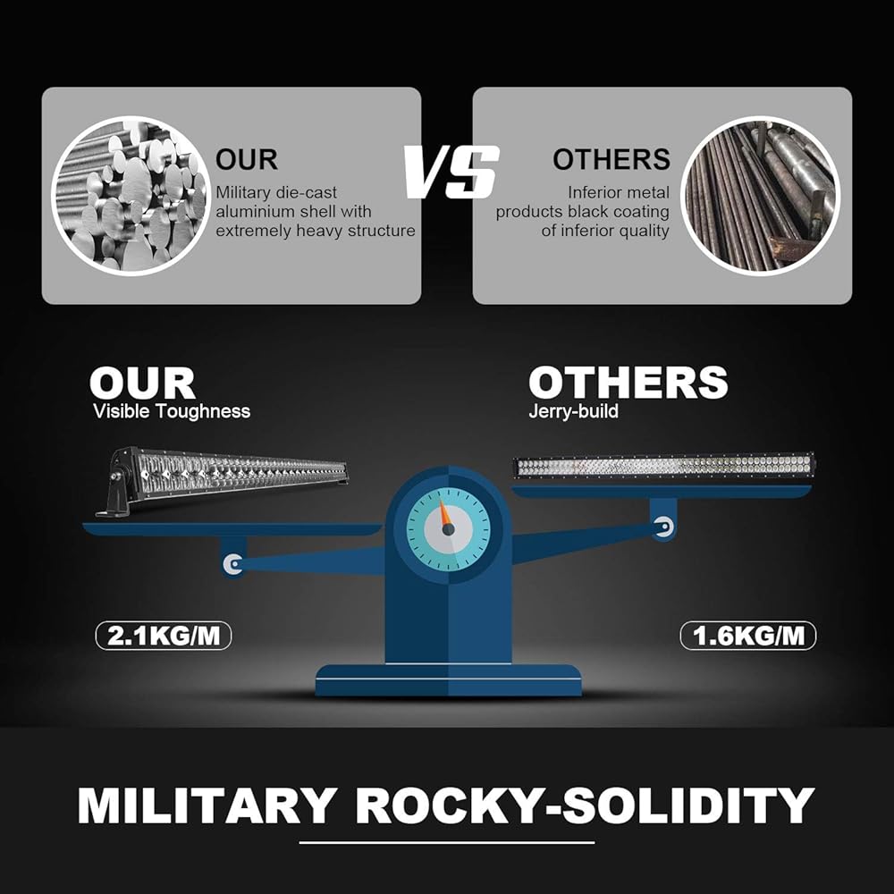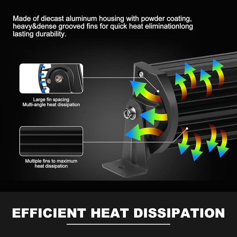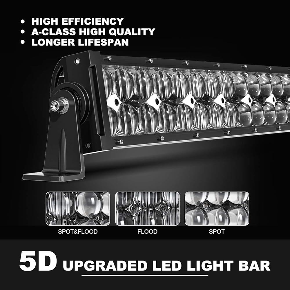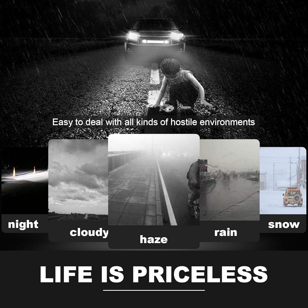🌙سطوع أعلى🌙: نظام بصري LED 5D، يعرض الضوء لمسافة قصوى خلال الظلام ويحافظ على الإضاءة المحيطية الساطعة في نطاق أوسع. هيكل كامل من الألومنيوم المصبوب، مقاوم للتآكل والتآكل بما يكفي لتحمل أي بيئة قاسية.