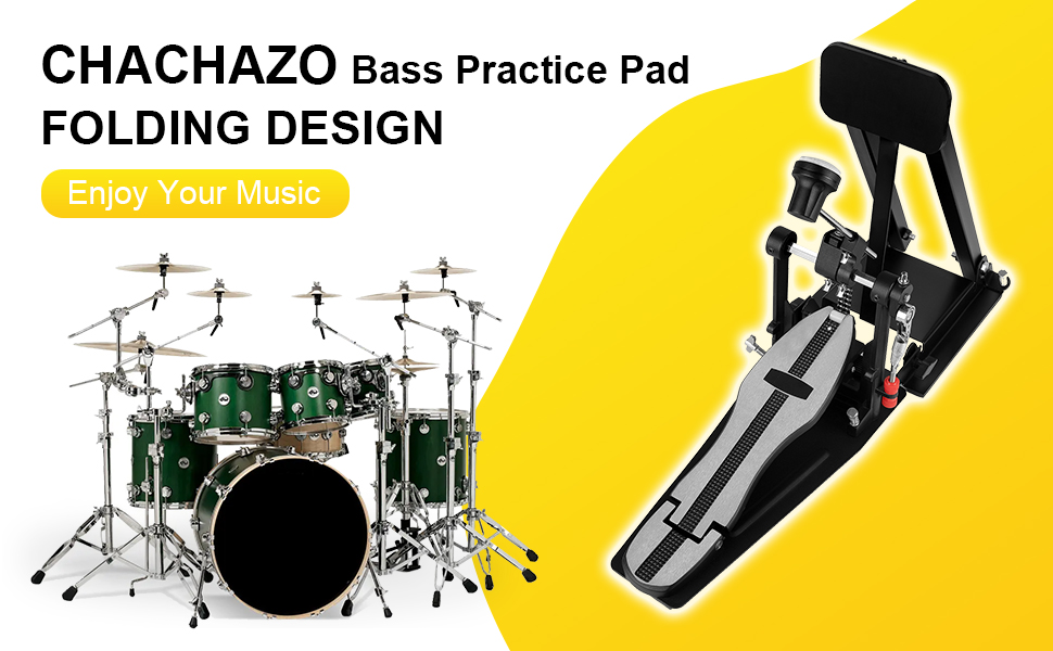 ضمادات عملية تشكاهازو باس الطبل، دواسة باس قابلة للطي للتدريب - شعور حقيقي عالي الكثافة مطاط الارتداد