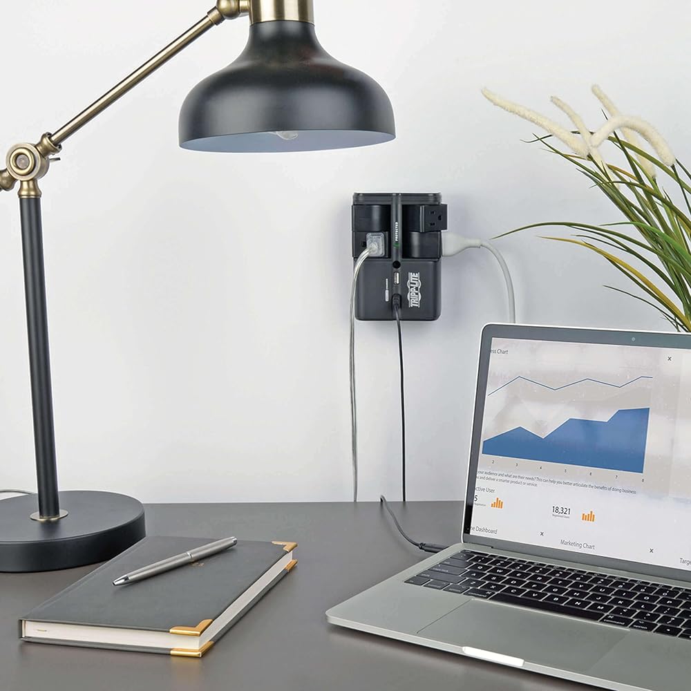 The SK40RUSBB surge suppressor offers reliable surge and line noise protection. Premium features include a compact, direct plug-in design and 4 rotatable outlets. The unique rotating design provides convenience and flexibility. Each outlet rotates independently to provide the perfect position to connect your equipment. The SK40RUSBB also includes 2 USB ports with 3.4 amps of total power that offers fast charging for smartphones, tablets, MP3 players and other portable devices. 1080 joules of surge protection to handle the strongest surge. Diagnostic LED alerts you to potential wiring or protection faults before connected equipment is damaged. $25,000 Ultimate Lifetime Insurance (U.S., Canada, and Puerto Rico only).