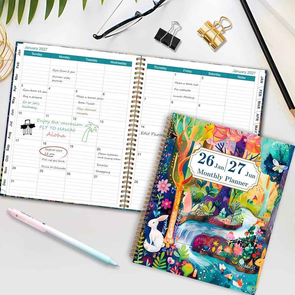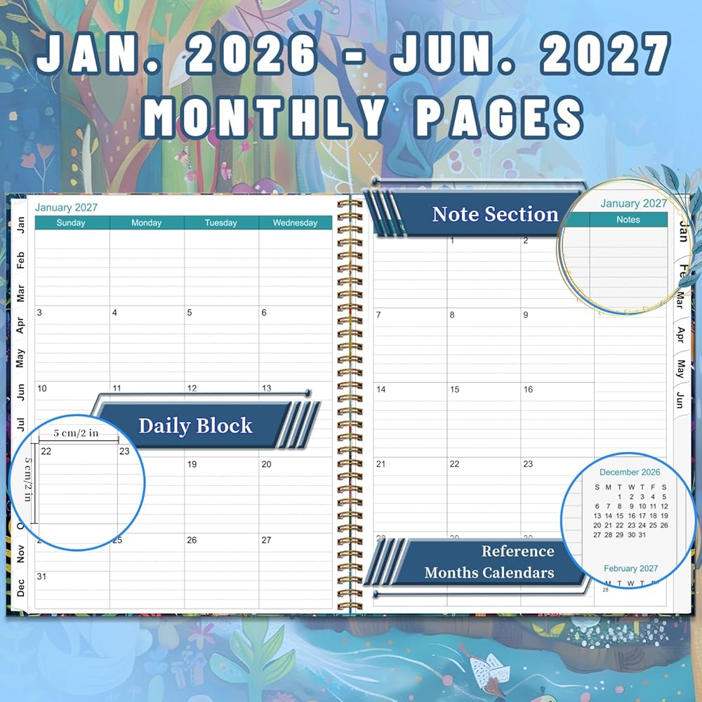 Monthly Planner 2026-2027 - Jan. 2026 - Jun. 2027, 18 Month Calendar 9" x 11", Large Monthly Planner 2026-2027 with Tabs, Spiral Bound Planners for Office School and Home Organizing
