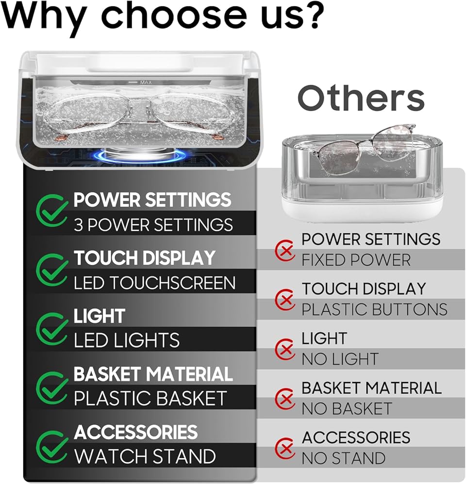 ⭐[Warranty and Service]: You will receive 1x ultrasonic cleaner, 1x cleaning basket, 1x watch holder, 1x detachable power cord, 1x instructions, and 1x polishing cloth, 1x tweezer. We offer 7/24-hour customer service. If you have any questions, please read the instructions or contact us, and we will try our best to help you.