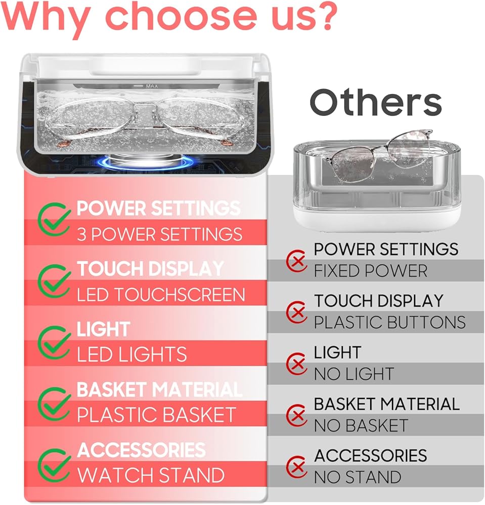 👍[A Wide Range of Applications]: This ultrasonic denture cleaner is more than a clean pod ultrasonic cleaner but also a lab ultrasonic cleaner. Wide used in households, laboratories, opticians, dentists, jewelry stores, watch shops, and more.