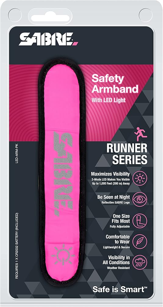 Focus on your run while staying safe. Running is your time. It's your exercise. Your place to get away. Your peace. We like to hope you never have to use our pepper gel, but our SABRE RED Runner Pepper Gel with LED Armband was designed to give you an extra level of security, without intruding on your run. Be seen at night with this dual mode bright light, visible up to 1,000 Feet (300 m) away. The SABRE RED Runner Pepper Gel with LED Armband maximizes visibility in all conditions and provides instantly accessible protection in case you encounter a threat. With 35 bursts (5x other brands), this product provides protection against multiple threats. Deployed in a powerful gel stream delivery to reduce wind blow-back, this pepper gel provides protection at a safe distance with its 12-foot (3.65 m) range. Pepper gel is deployed as a sticky, gel substance in a powerful stream to virtually eliminates wind blow-back and only to affect the target. One size fits most with the fully adjustable armband. It also features a locking top mechanism that prevents accidental discharge. Stay visible, stay safe, and enjoy your runs with maximized safety from SABRE. SABRE is the #1 pepper spray chosen by thousands of police departments and the leader in personal safety and self-defense products. With over 45 years of experience manufacturing pepper spray, SABRE is trusted by consumers and police officers worldwide. Our pepper sprays and gels are proudly manufactured in the U.S.A.