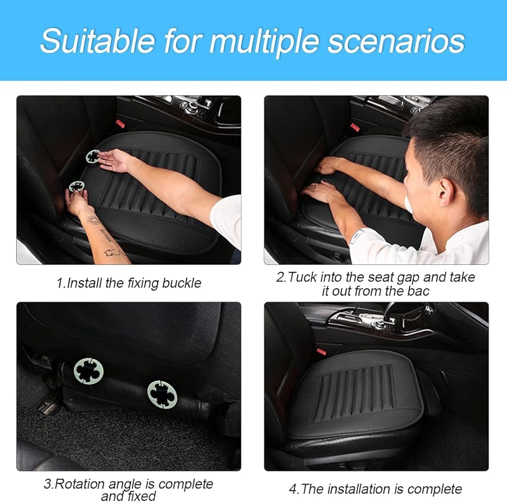 • QUALITY GUARANTEE: Our car seat covers are made of upgraded durable leather material, breathable and comfortable. Benefits from the material it adopted, it is scratch resistant, applicable to all seasons. And you don't have to worry about that seat cushion will move or slide around while driving, backside of cushion is coated with non-slip material which increases your safety.