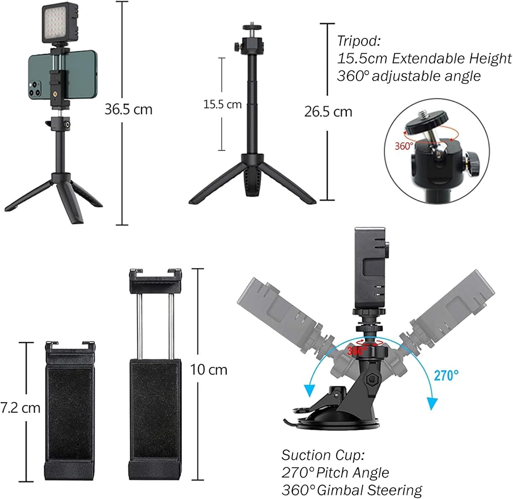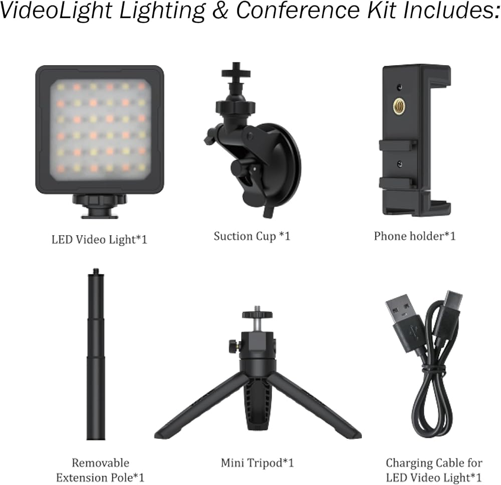 مجموعة إضاءة الفيديو: اجعل مؤتمرات الفيديو ومكالمات التكبير/التصغير أمرًا سهلاً مع مجموعة الحامل ثلاثي القوائم وإضاءة البث. يوفر الحامل القابل للتعديل دعمًا ثابتًا لهاتفك، بينما ينتج ضوء السيلفي توهجًا دافئًا، لذلك تبدو بأفضل مظهر أثناء أي جلسة بث ذاتي. باستخدام كوب الشفط الموجود على الضوء، يمكنك تثبيته بالجزء الخلفي من الكمبيوتر المحمول الخاص بك للحصول على إضاءة جيدة عند استخدام كاميرا الويب.