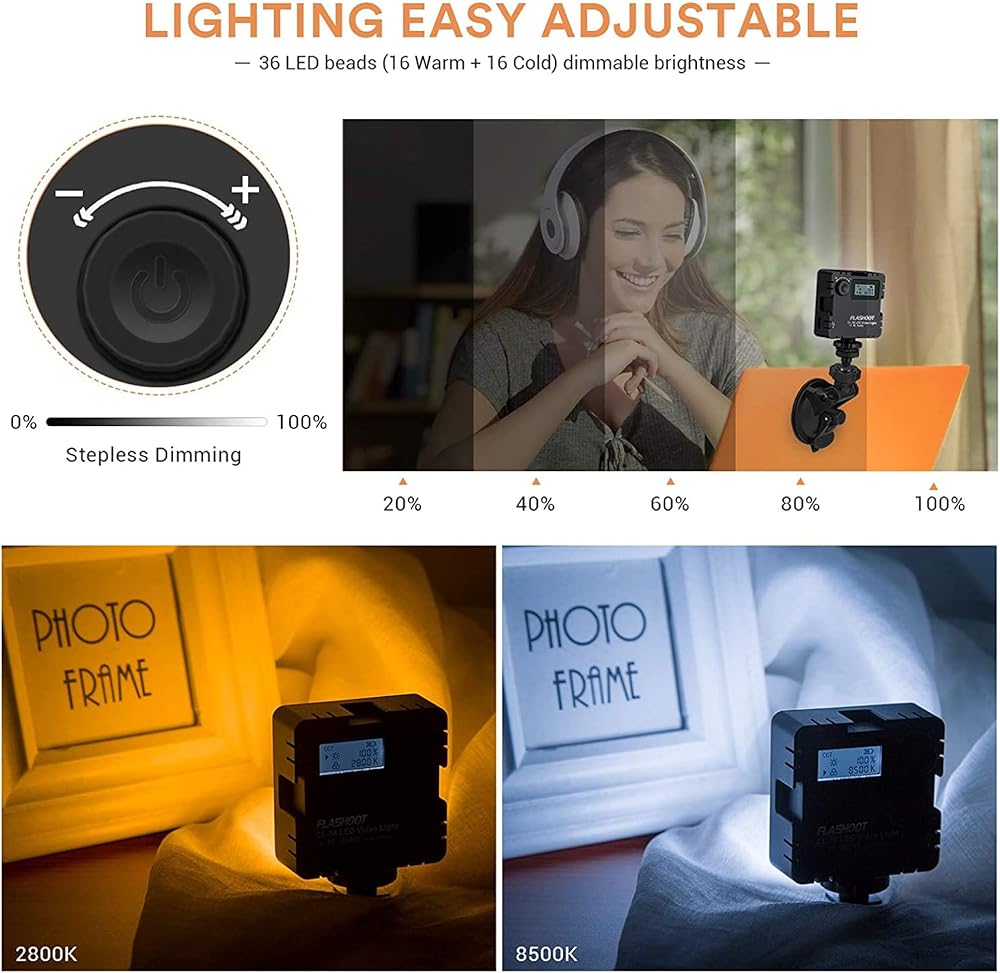 أوضاع إضاءة متعددة: يحتوي مصباح LED الصغير على شاشة LCD تعرض معلومات مثل درجة حرارة اللون والجهد المتبقي للبطارية والسطوع. لديك خيار ضبط السطوع ودرجة حرارة اللون عن طريق تمرير العجلة لتناسب متطلباتك.