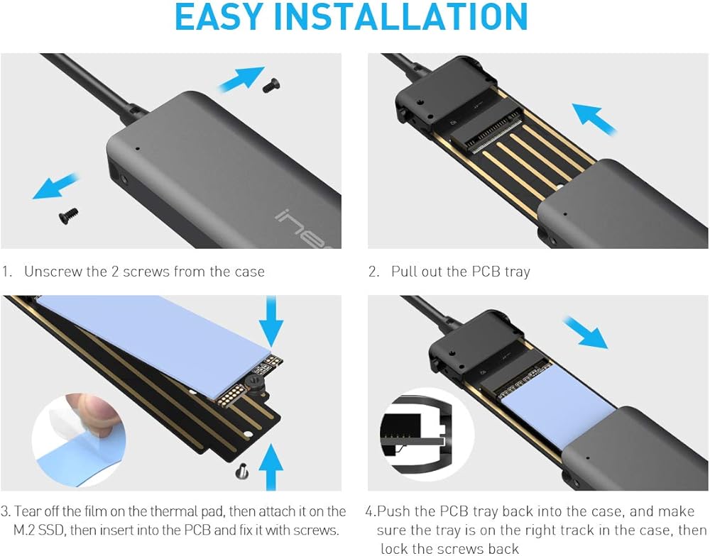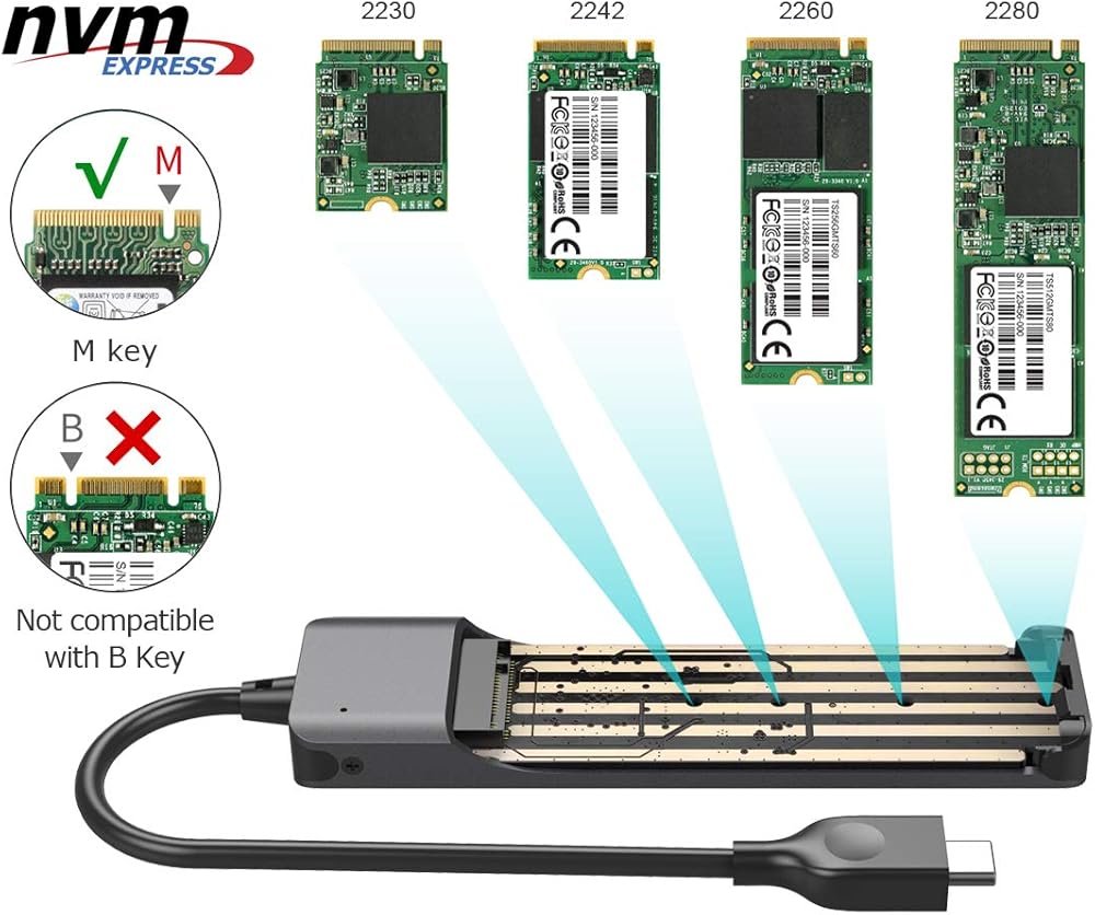 - Ultra fast 10Gbps USB 3.1 transfer speed, widely compatible with M.2 NVMe SSD in M Key spec and size of 2280, 2260, 2242, 2230