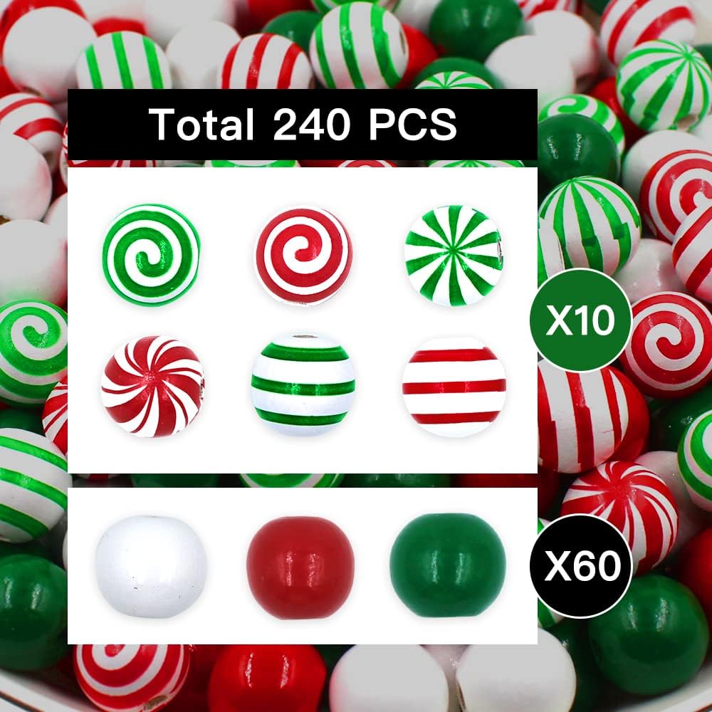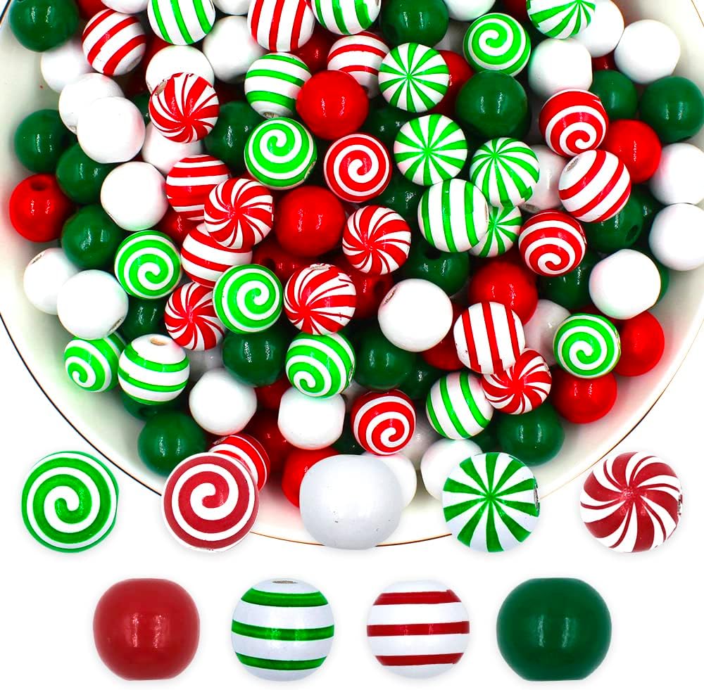 240 X Christmas candy Wood Beads