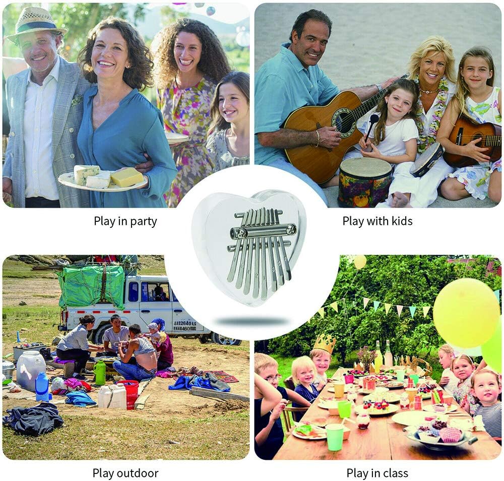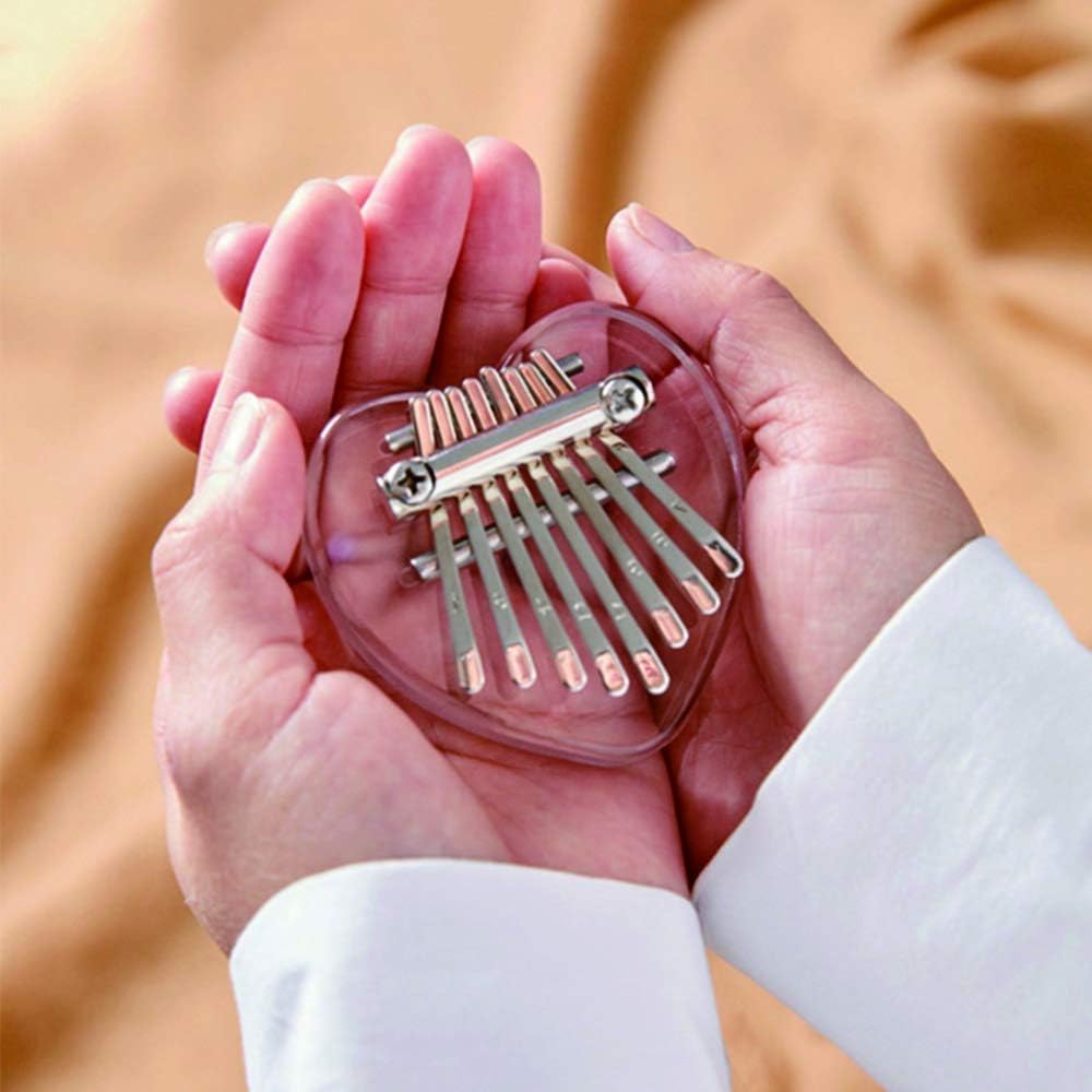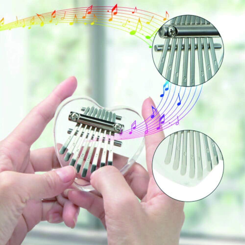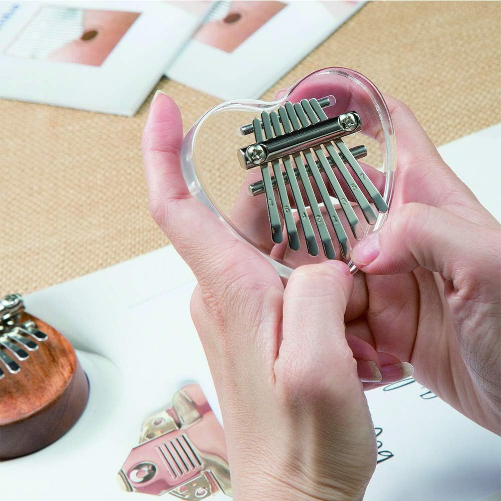 قلادة من Yahpetes إبهام بيانو صغير كاليمبا 8 مفتاح كريستال الإبهام على شكل قلب البيانو إصبع شفاف بيانو ماريمبا الموسيقى هدية رائعة للمبتدئين (8 مفاتيح بيانو الإبهام)