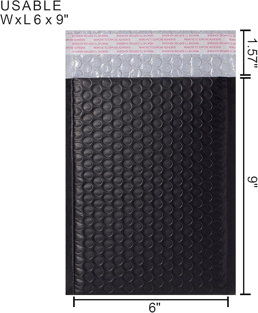 • الحجم الداخلي: 6 بوصة × 9 بوصة (الطول × العرض)، غطاء ذاتي اللصق 1.57 بوصة
