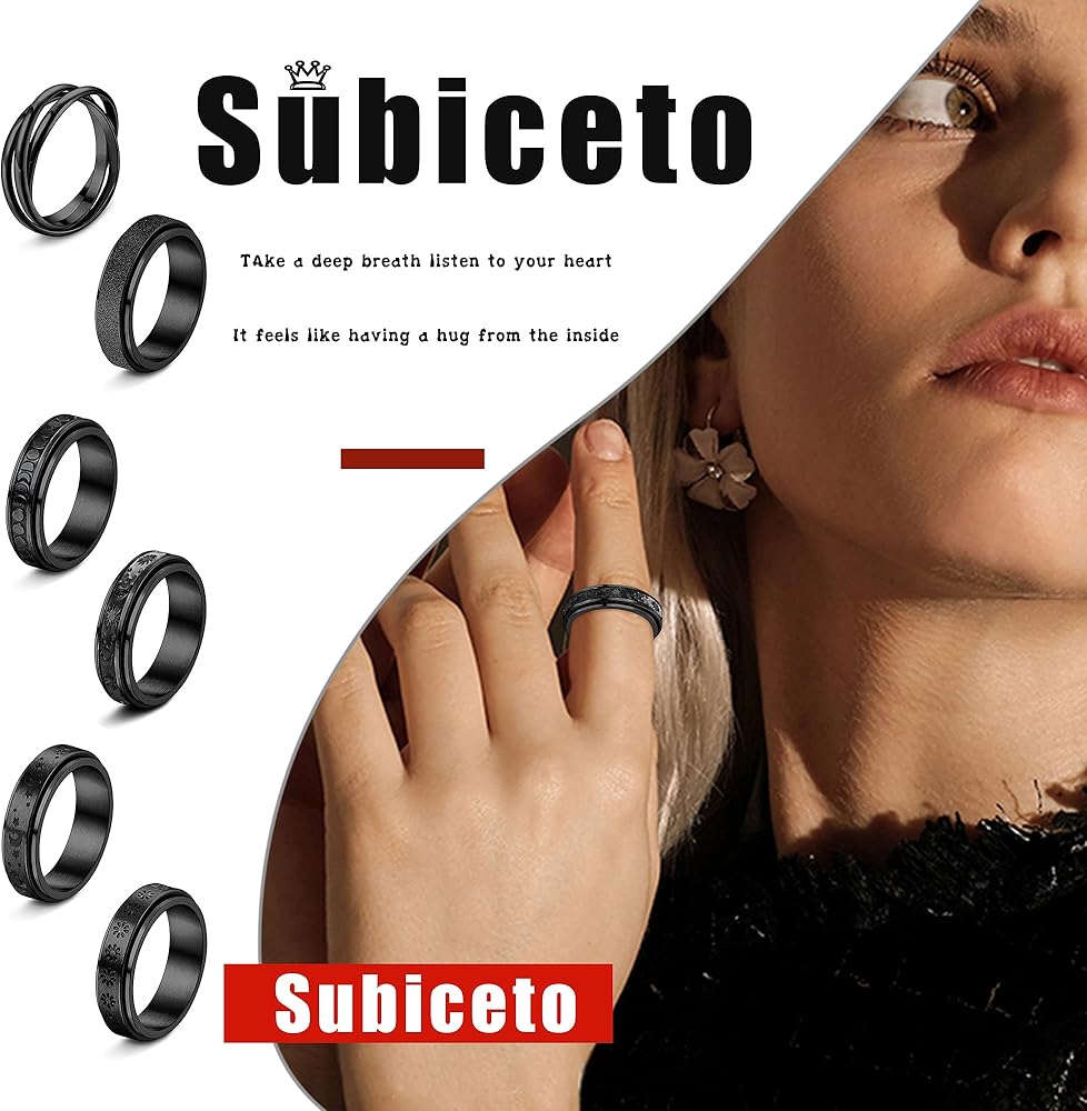 Subiceto 6 قطع حلقات الدوار للنساء الفولاذ المقاوم للصدأ فيدجيت باند خواتم مجموعة القمر نجمة زهرة الرمال انفجار الانتهاء من حلقة المرأة لتخفيف التوتر الزفاف