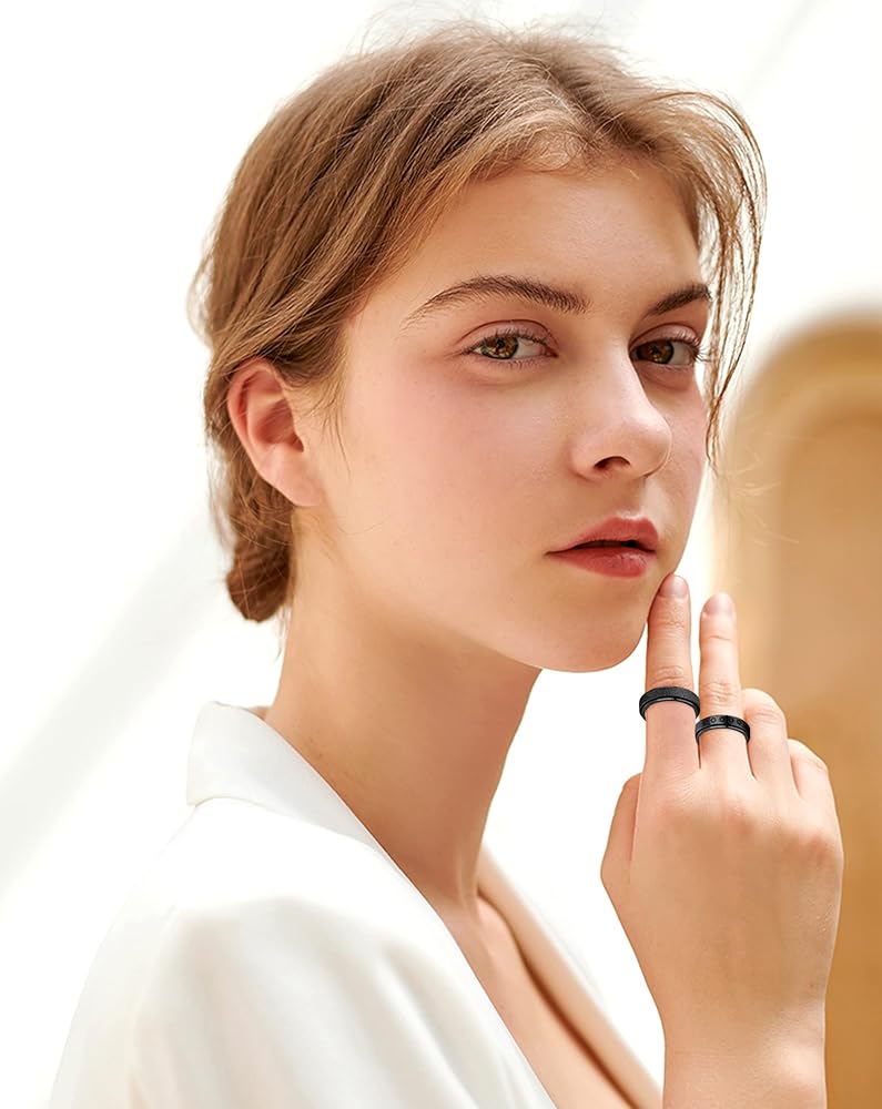 حلقات الفرقة العملية والعصرية تجعلك جذابة وفريدة من نوعها. يمكن أن تكون الحلقات الدوارة الرائعة والأنيقة بمثابة خاتم زوجين متطابقين، وخاتم الزفاف، وخواتم الخطوبة، وخواتم الفرقة اليومية.
