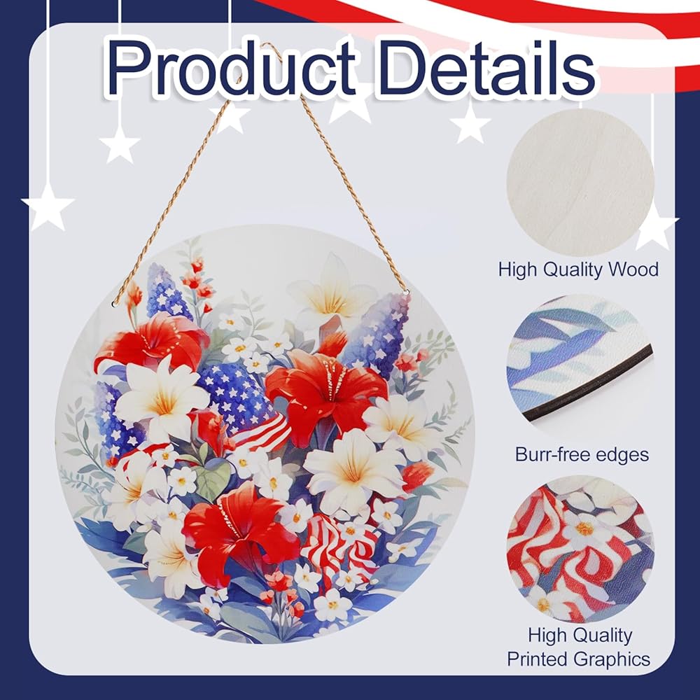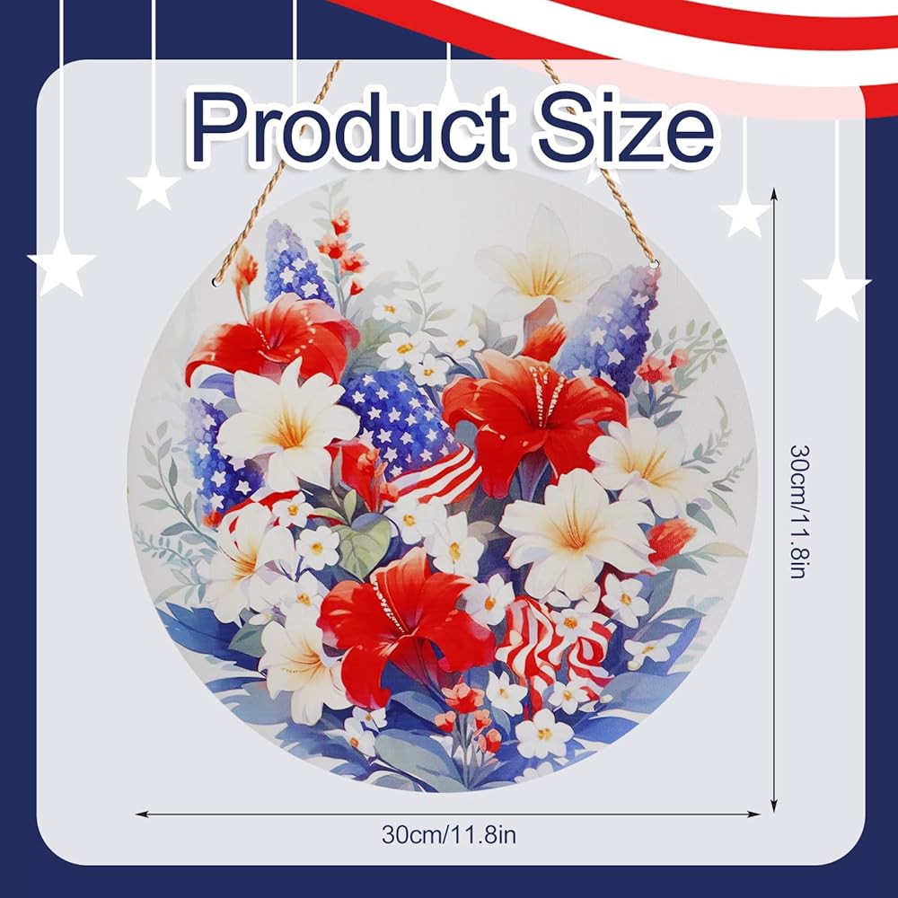 Wide applications:4th of july hanging sign suitable for patriotic holidays such as July 4th, Independence Day, Memorial Day for Martyrs, Independence Day, and Veterans Day, adding more fun to celebrating patriotic parties,can be applied indoors or outdoors, such as porch, entrance, door, wall, living room, yard, etc.