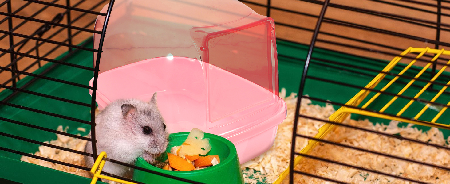 🐹تصميم شفاف 🐹- مراحيض الهامستر ذات مظهر شفاف بسيط، مليئة بالمرح، وسهلة مراقبة الهامستر وهو يستحم ويلعب ويحفر، ويمكن وضعها في قفص الحيوانات الأليفة، وتلبي بسهولة احتياجات الحيوانات الأليفة الصغيرة.