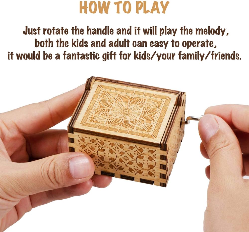 This is a beautiful wooden music box with meaningful message engraved inside of the box. The beautiful melody of "Amazing Grace" will "WOW" your gift receiver as she/he rotate the handle. This vintage music box is an ideal gift for some special occasions such as Birthday, Anniversary, Christmas, etc.