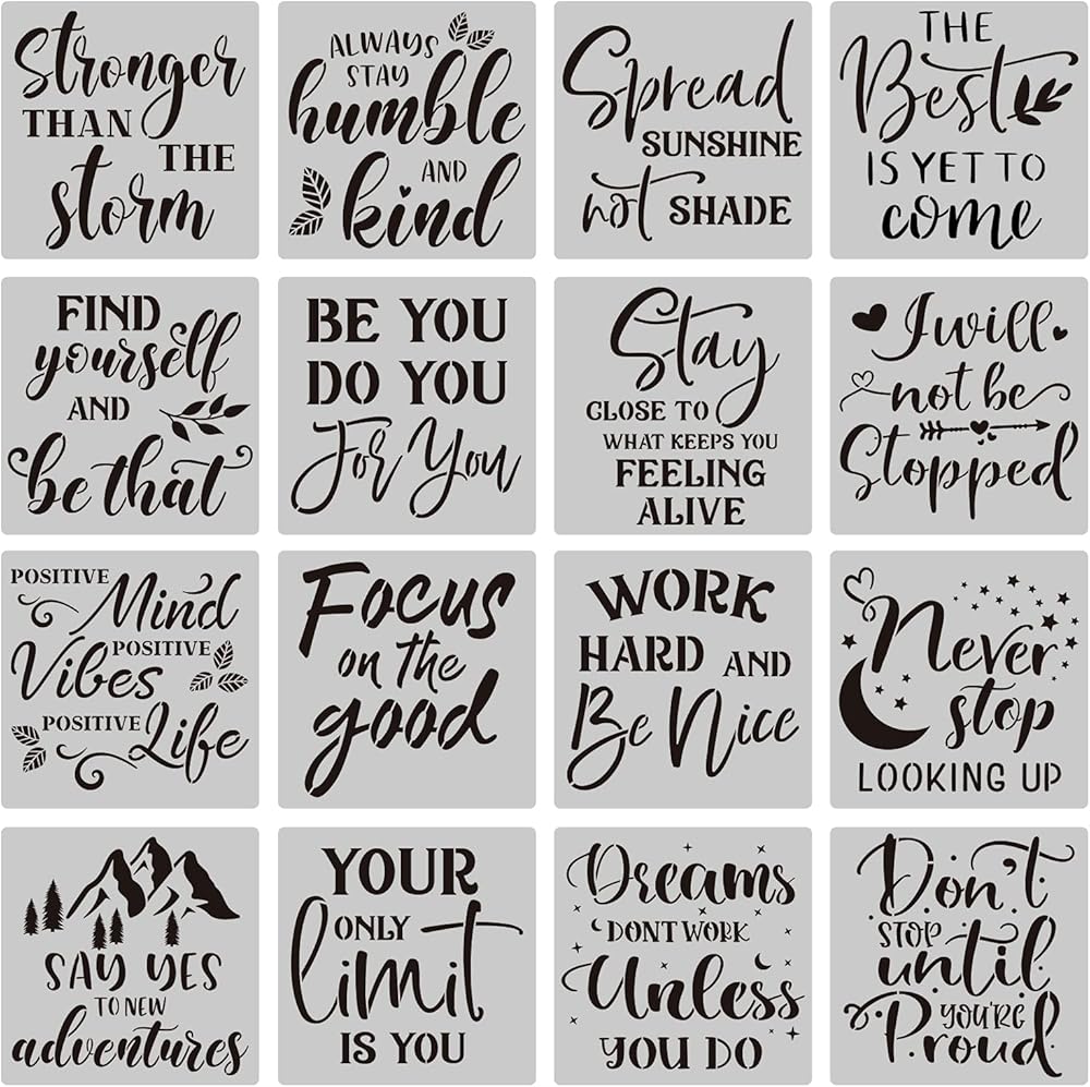 16 Pieces Inspirational Word Stencils for Painting on Wood, Canvas, Wall to DIY Art Crafts, Make Home Decor